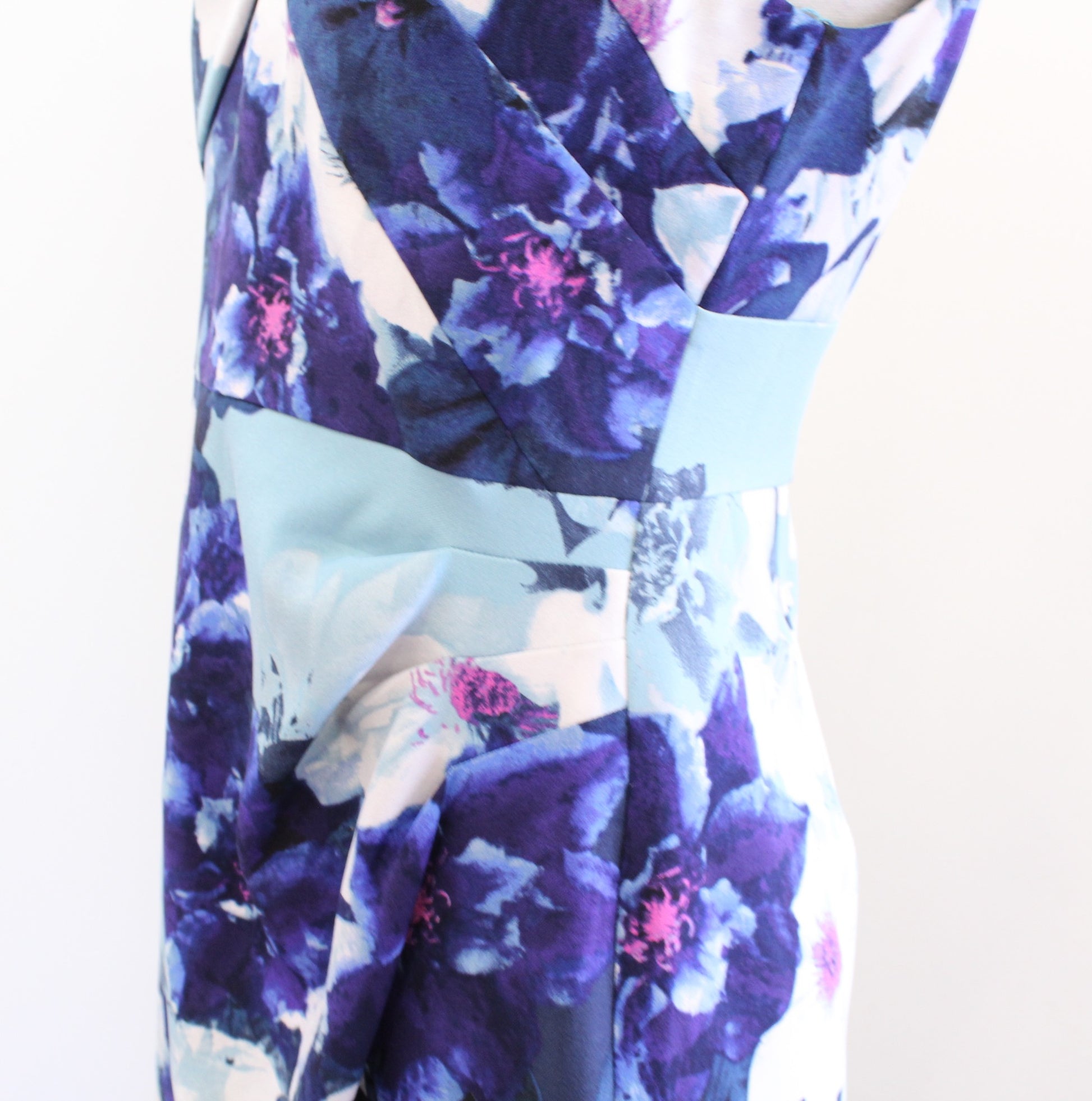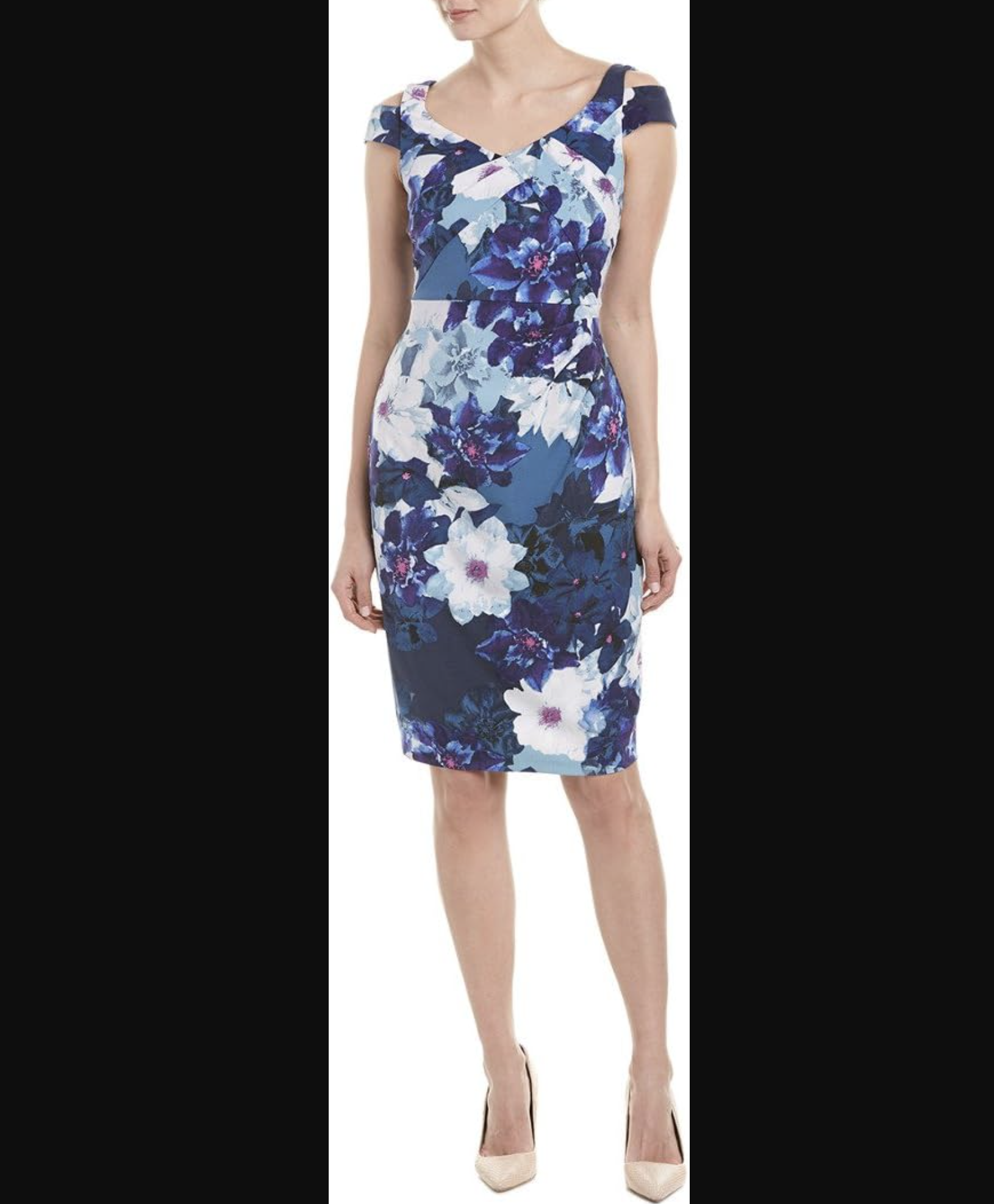 Adrianna Papell Blue Floral Print Cutout Cold Shoulder Sheath Dress 4 Cocktail