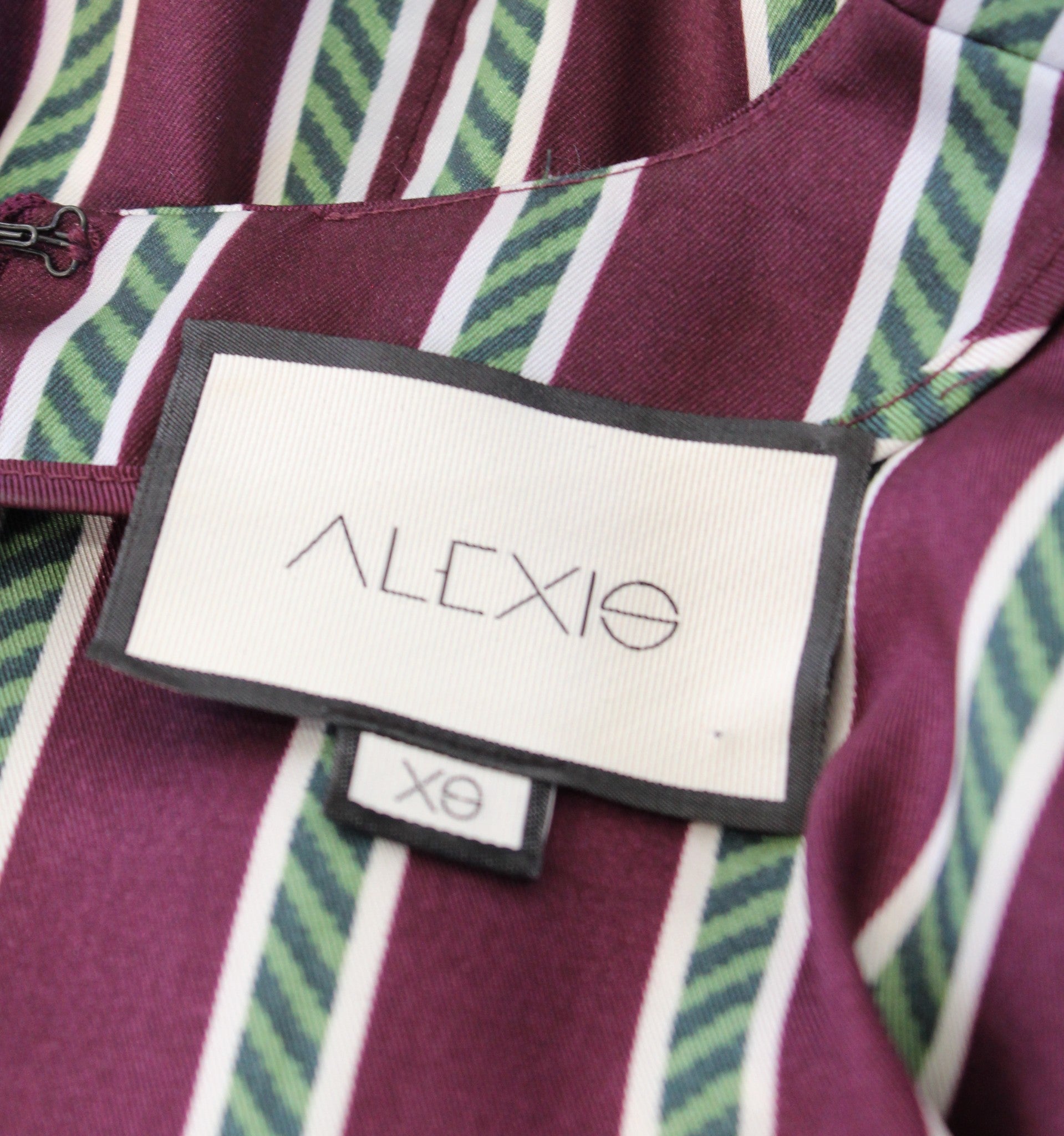 Alexis Tena Burgundy Green Striped Plunge V Neck Long Sleeve Mini Dress Size XS