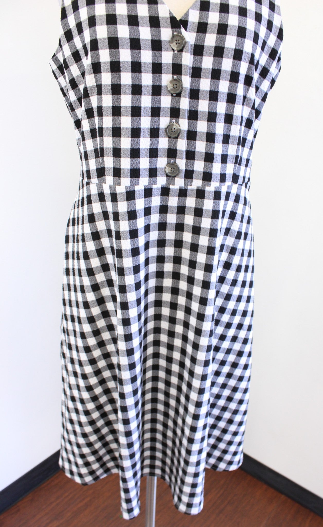 Ann Taylor Factory Black White Gingham Plaid Sleeveless A Line Dress Sz 8 V Neck