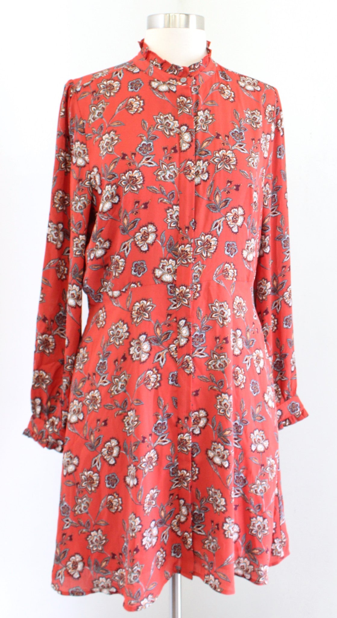 Ann Taylor Loft Burnt Orange Paisley Floral Button Front A Line Shirt Dress Sz 4