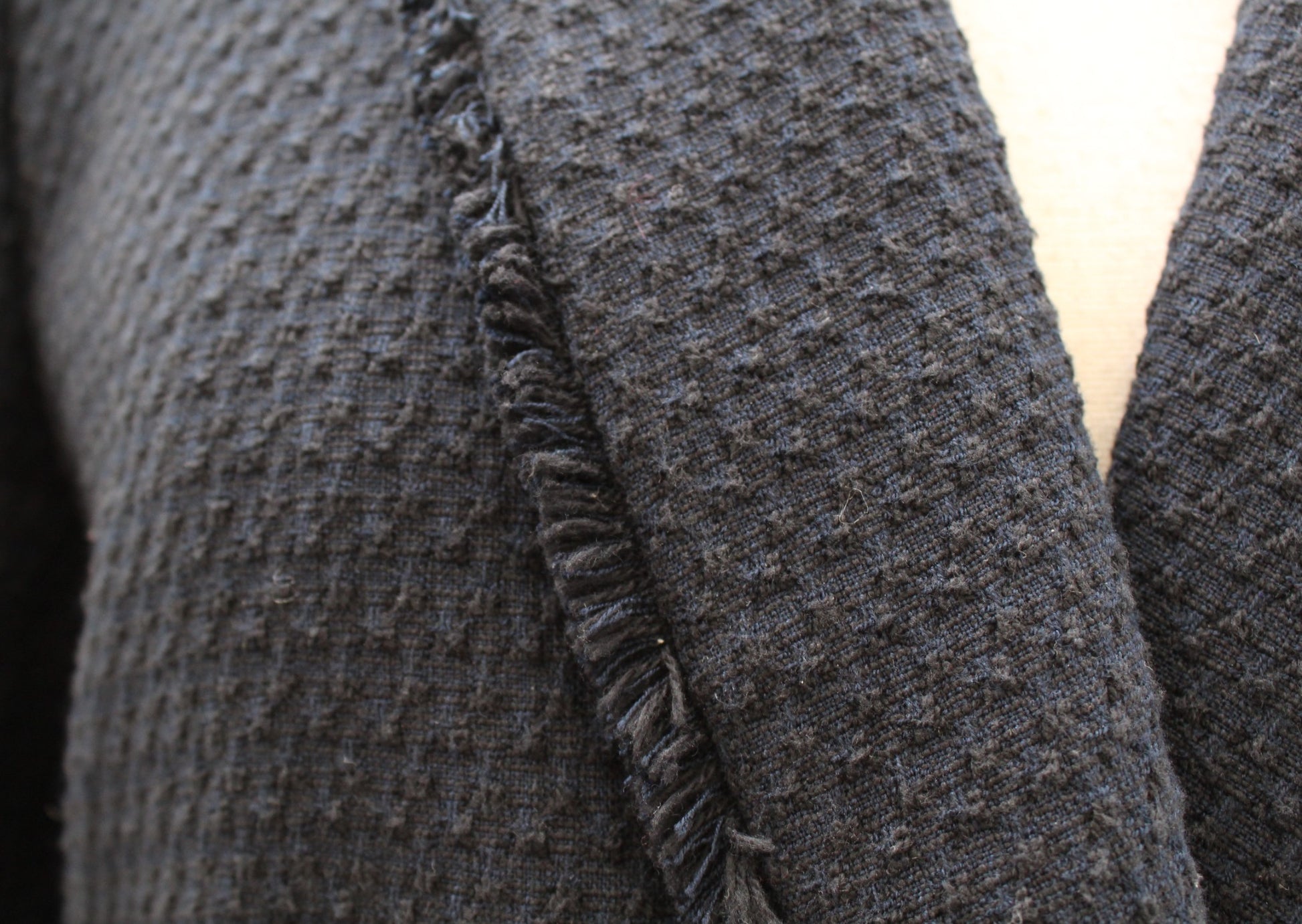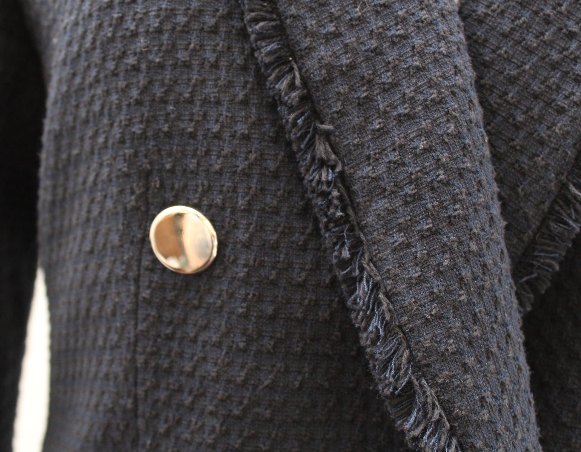 Ann Taylor Navy Blue Black Tweed Fringe Double Breasted Blazer Jacket Size 6