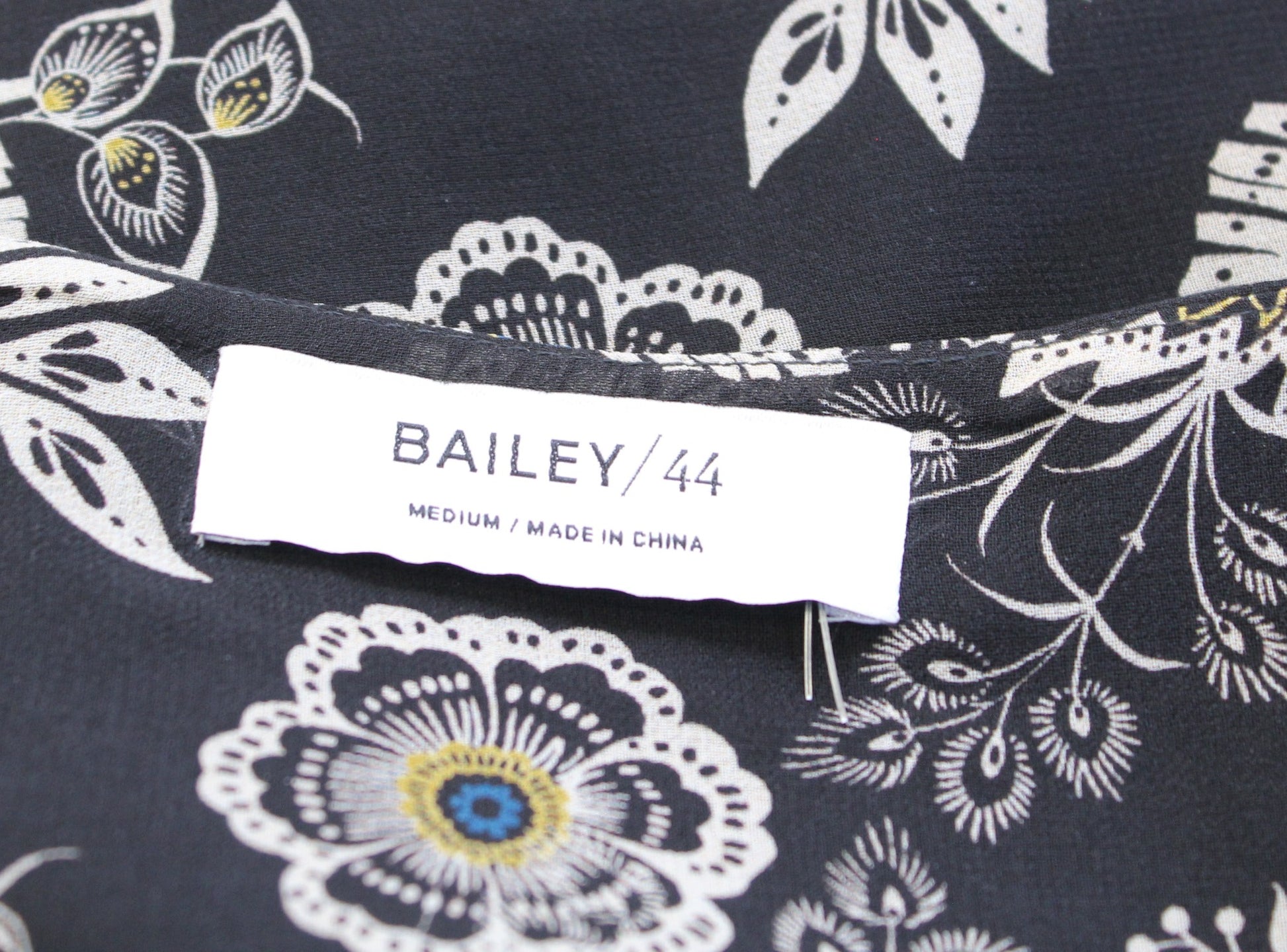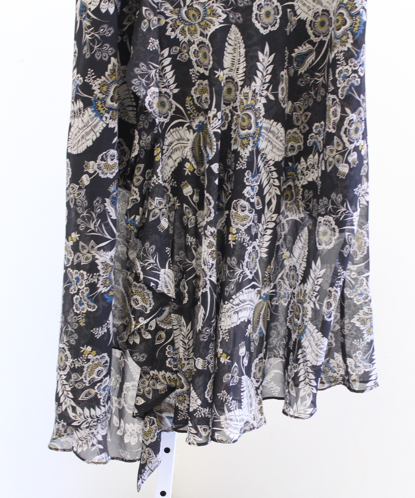 Bailey 44 Josephine Black Floral Print Asymmetric Hem Midi Skirt Size M Boho