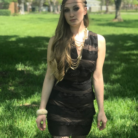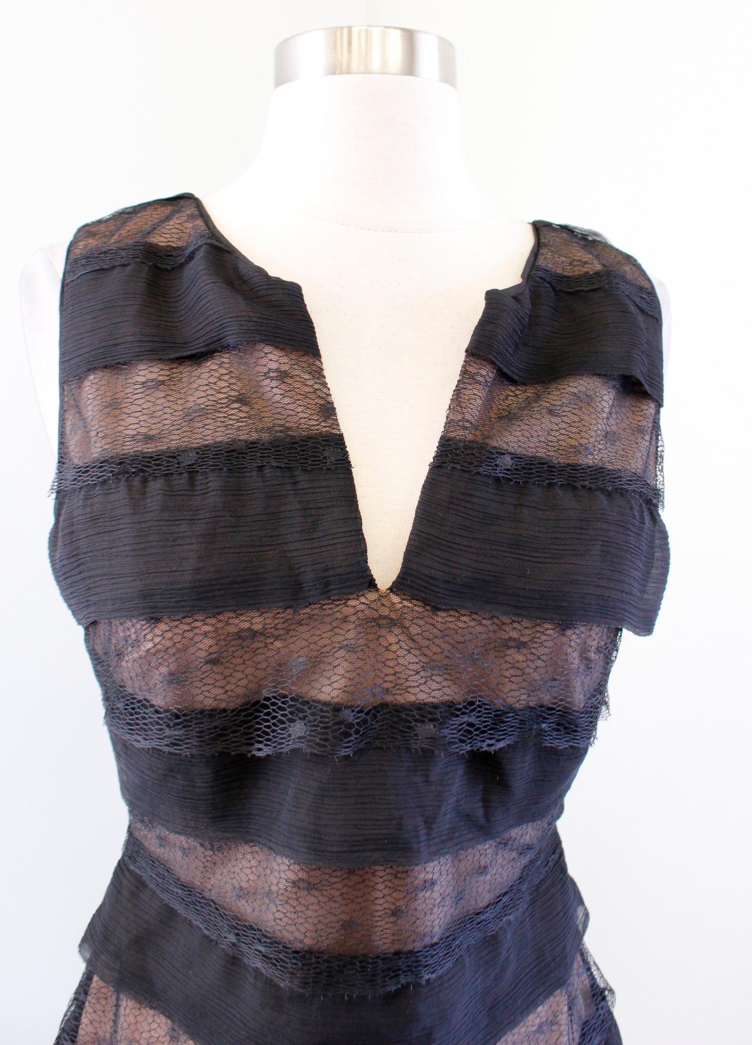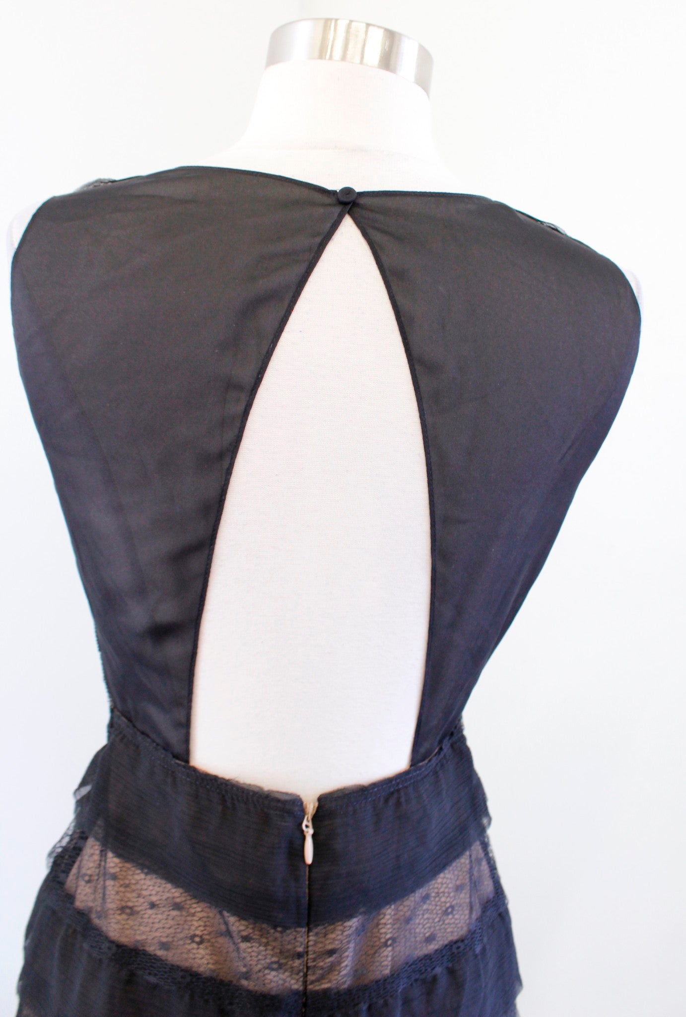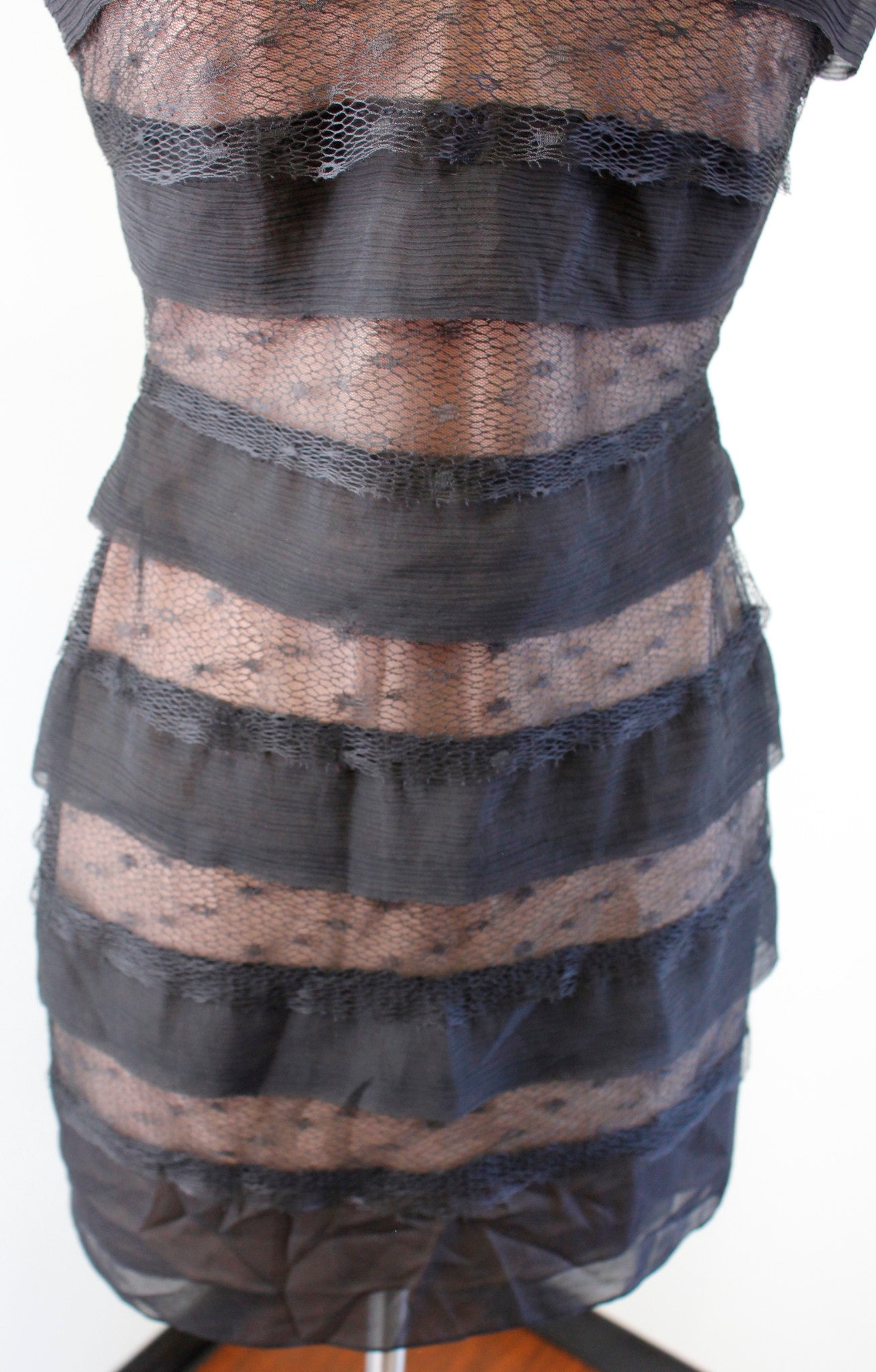 BCBG Max Azria Fionna Black Ruffle Tiered Lace Illusion Cocktail Party Dress 2