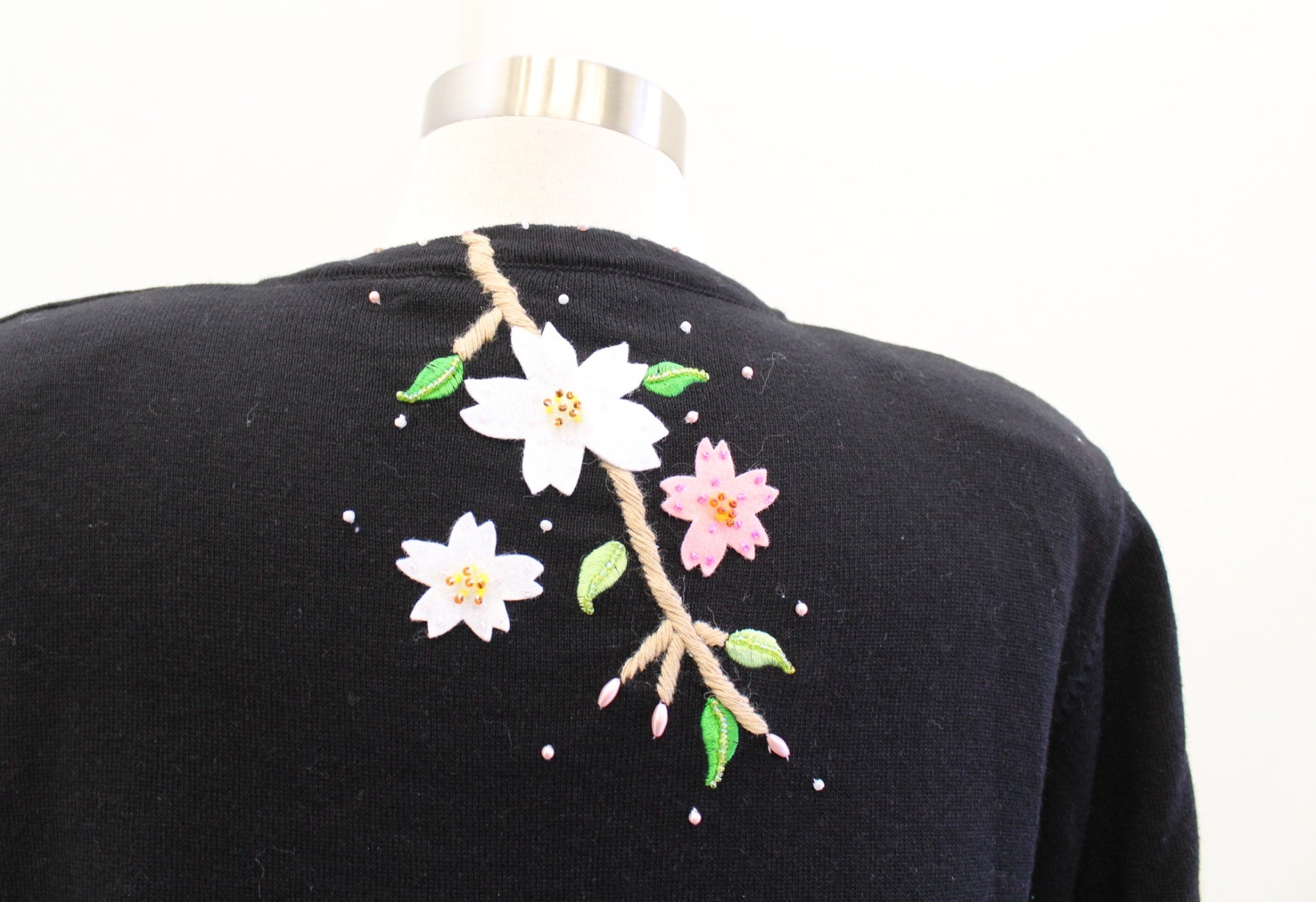 Black Pink 3D Felt Floral Embroidered Embellished Cardigan Sweater Size PL LP