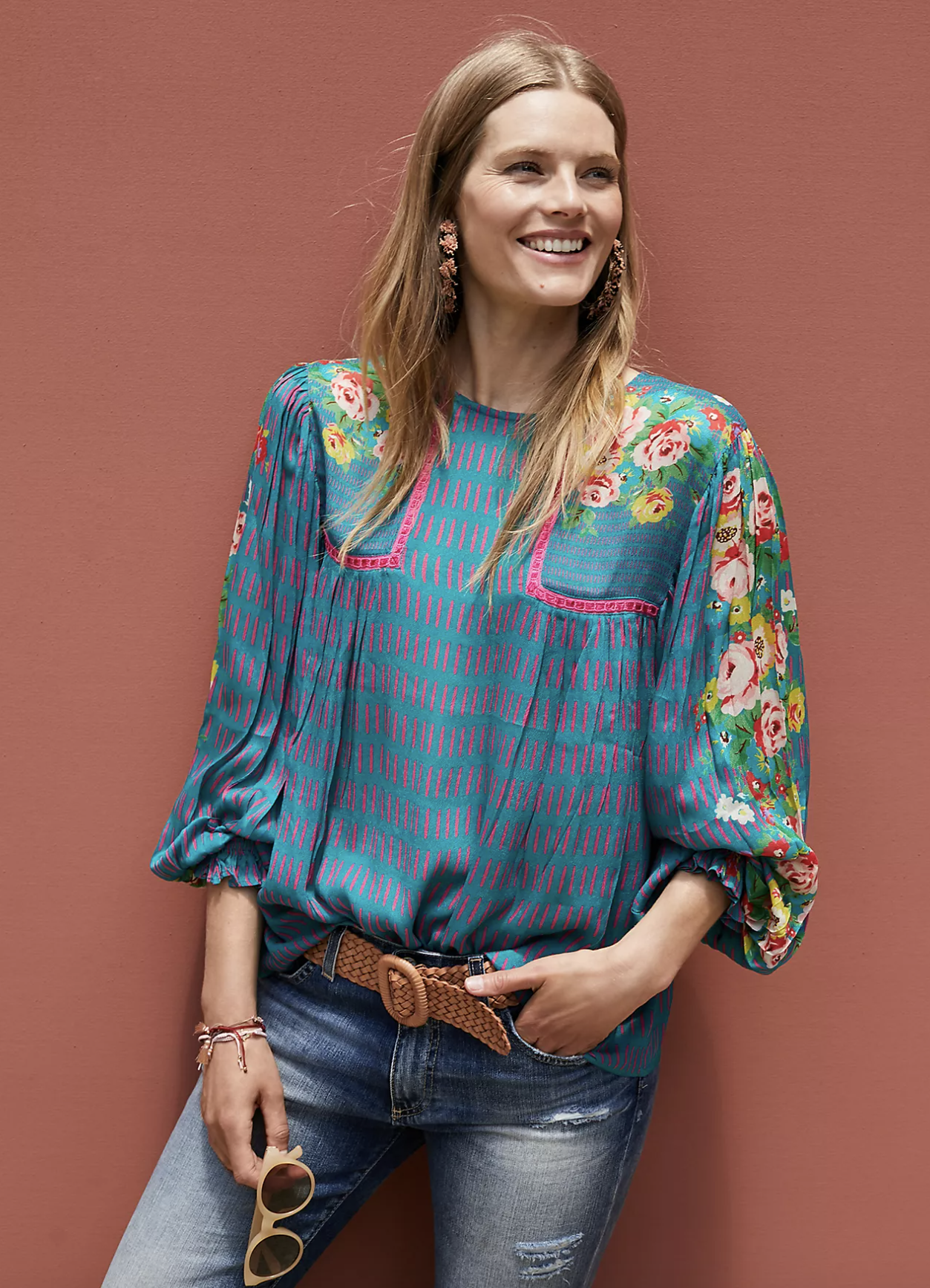 Blank London Bl^nk Anthropologie Miranda Floral Peasant Blouse Top Size S Blue