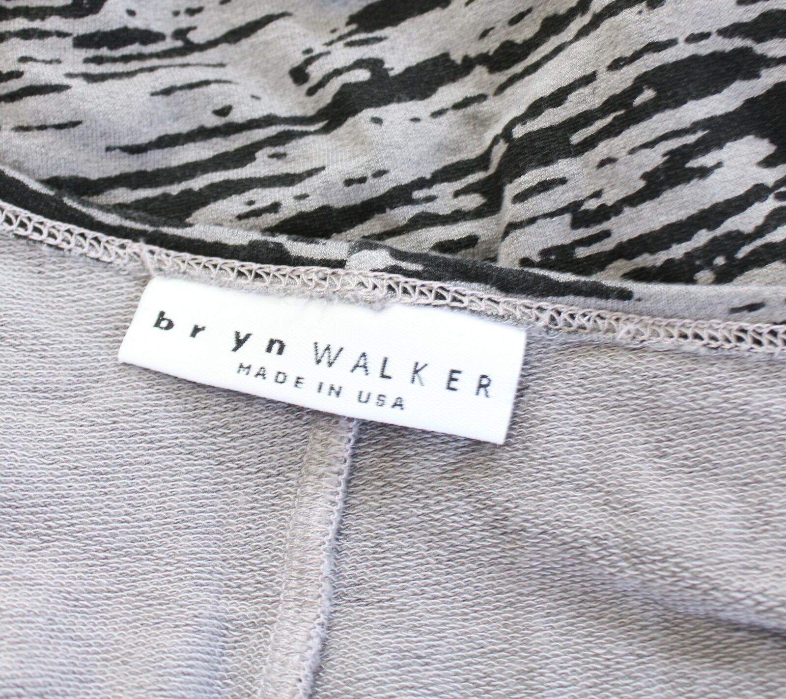 Bryn Walker Gray Black Striped Printed Hi Lo Hem Tunic Top Blouse Size L Long sleeve