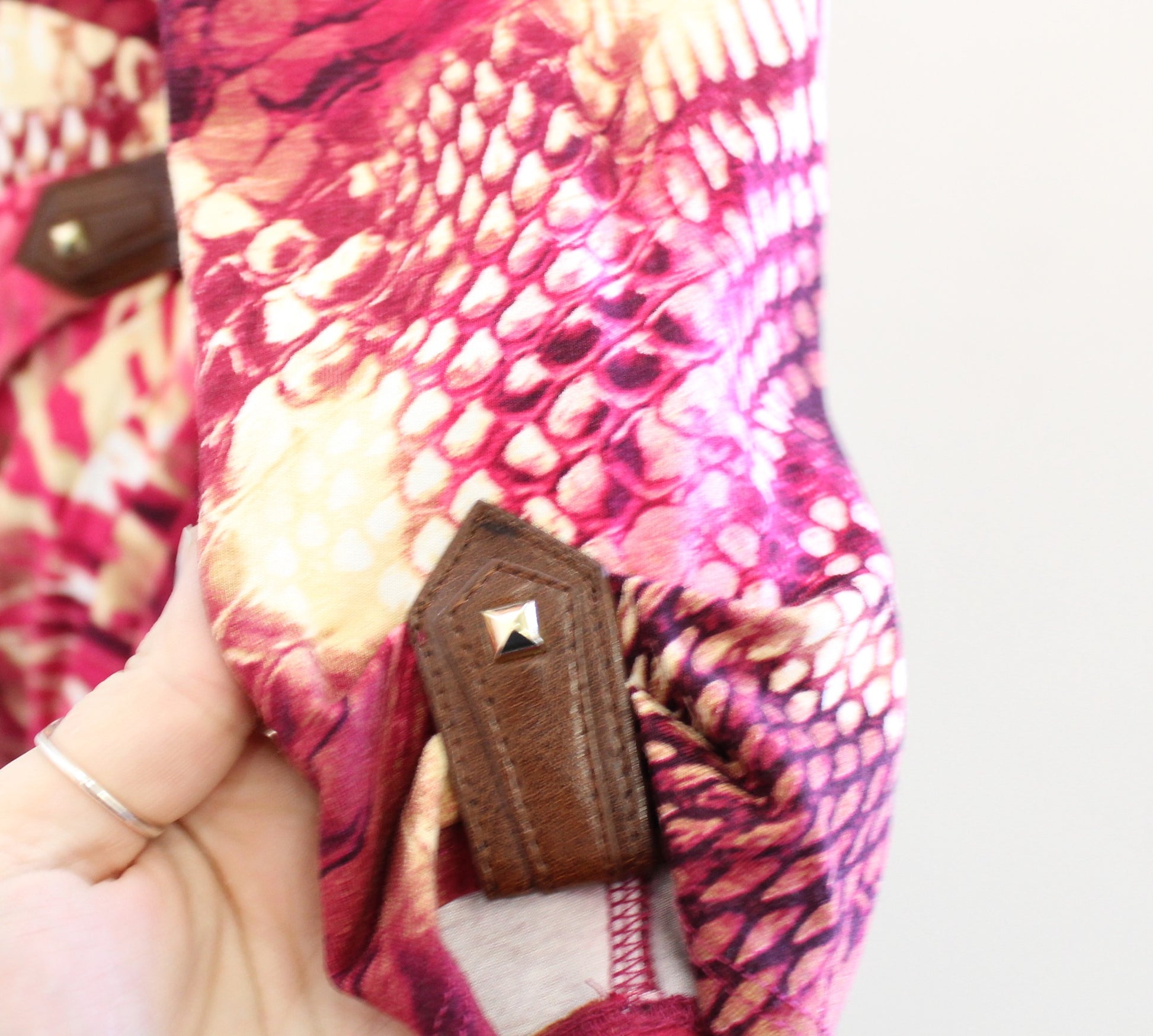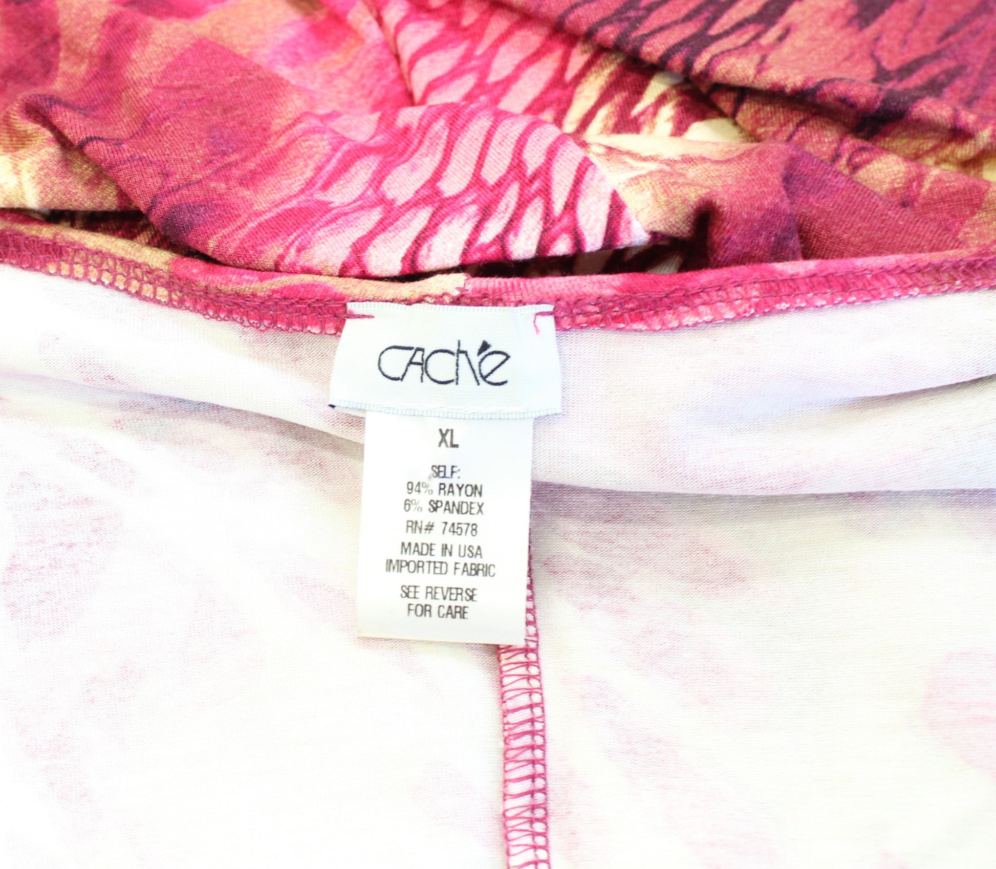 Cache Pink Abstract Animal Snakeskin Print Ruched Sheath Dress Size XL V Neck