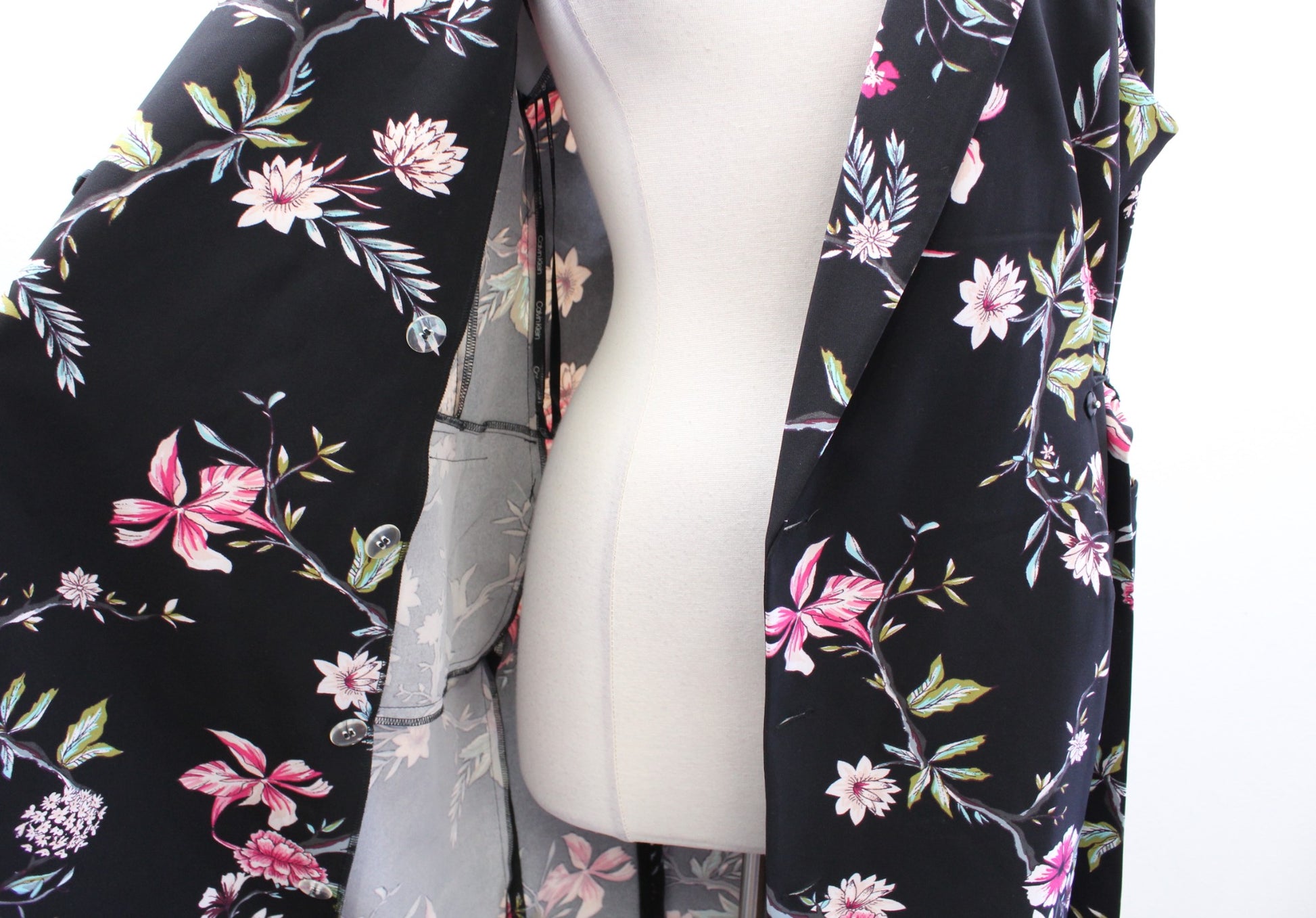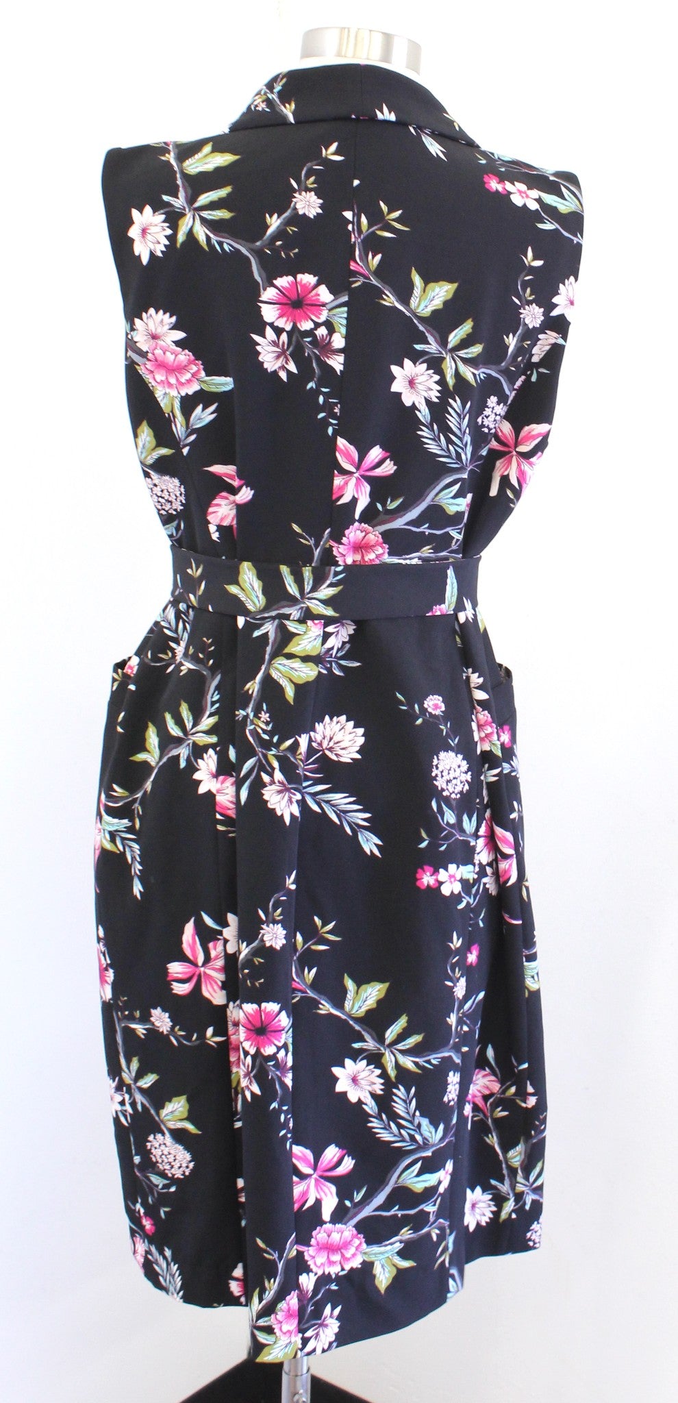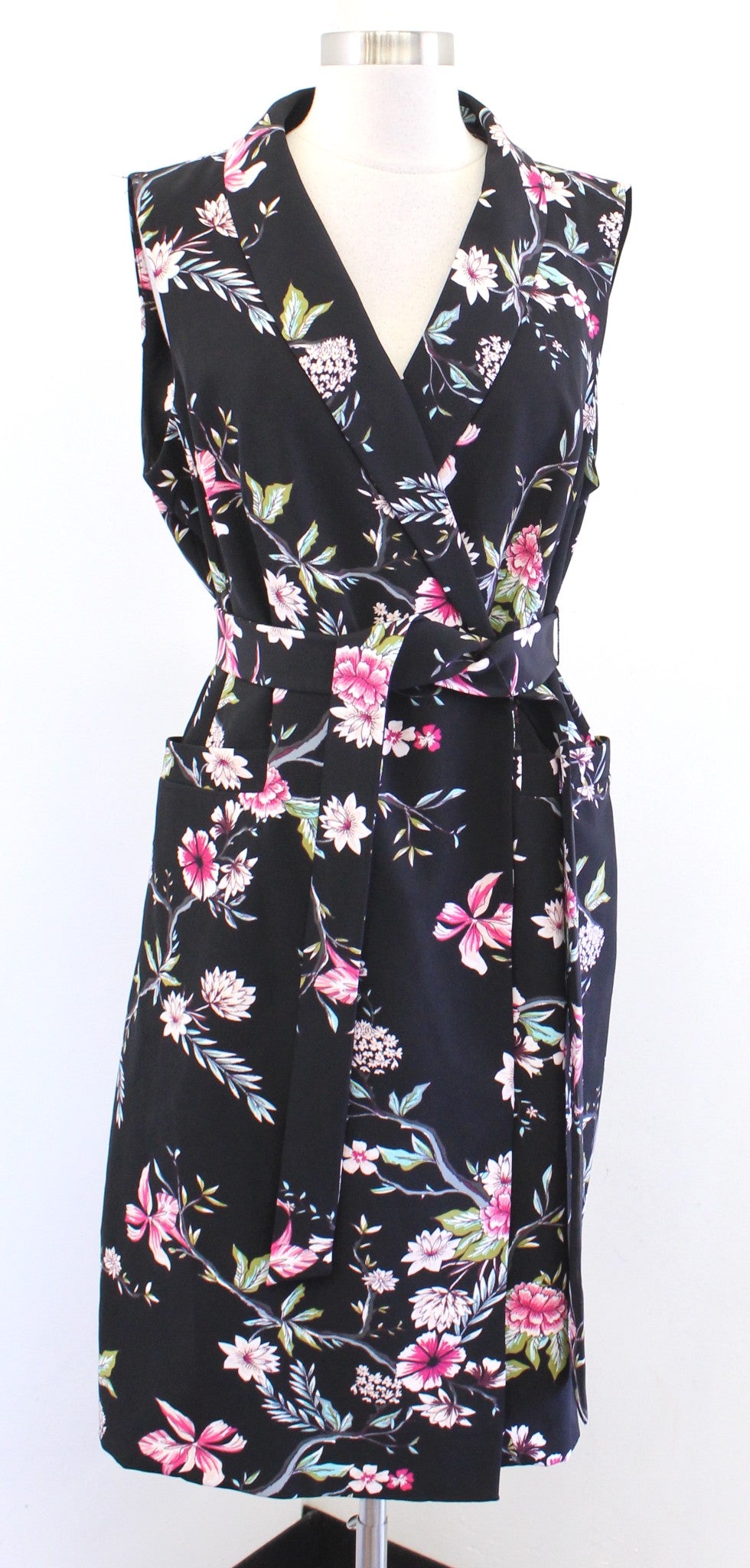 Calvin Klein Black Floral Print Tie Waist Wrap Look Sheath Dress Size 14 Career