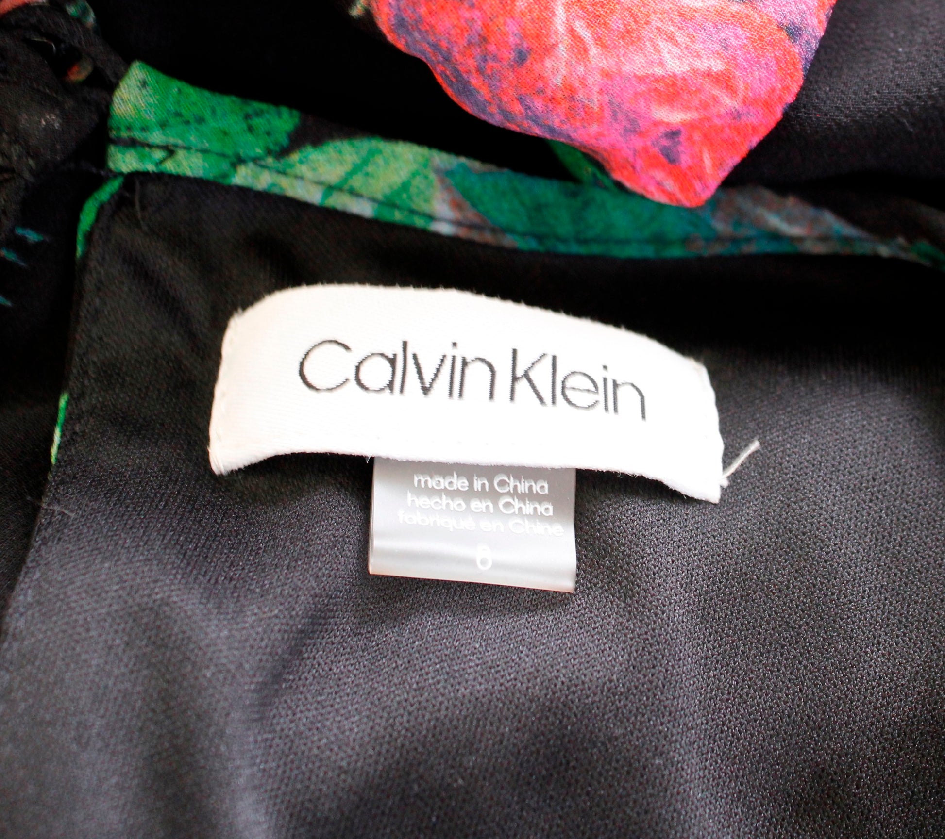 Calvin Klein Black Multi Color Floral Print Sleeveless Shift Swing Dress Size 8