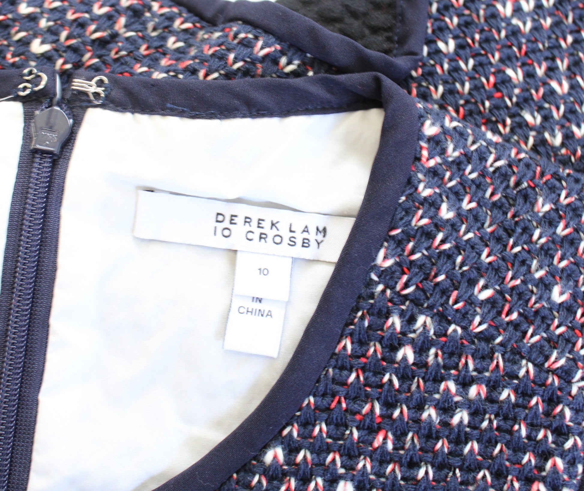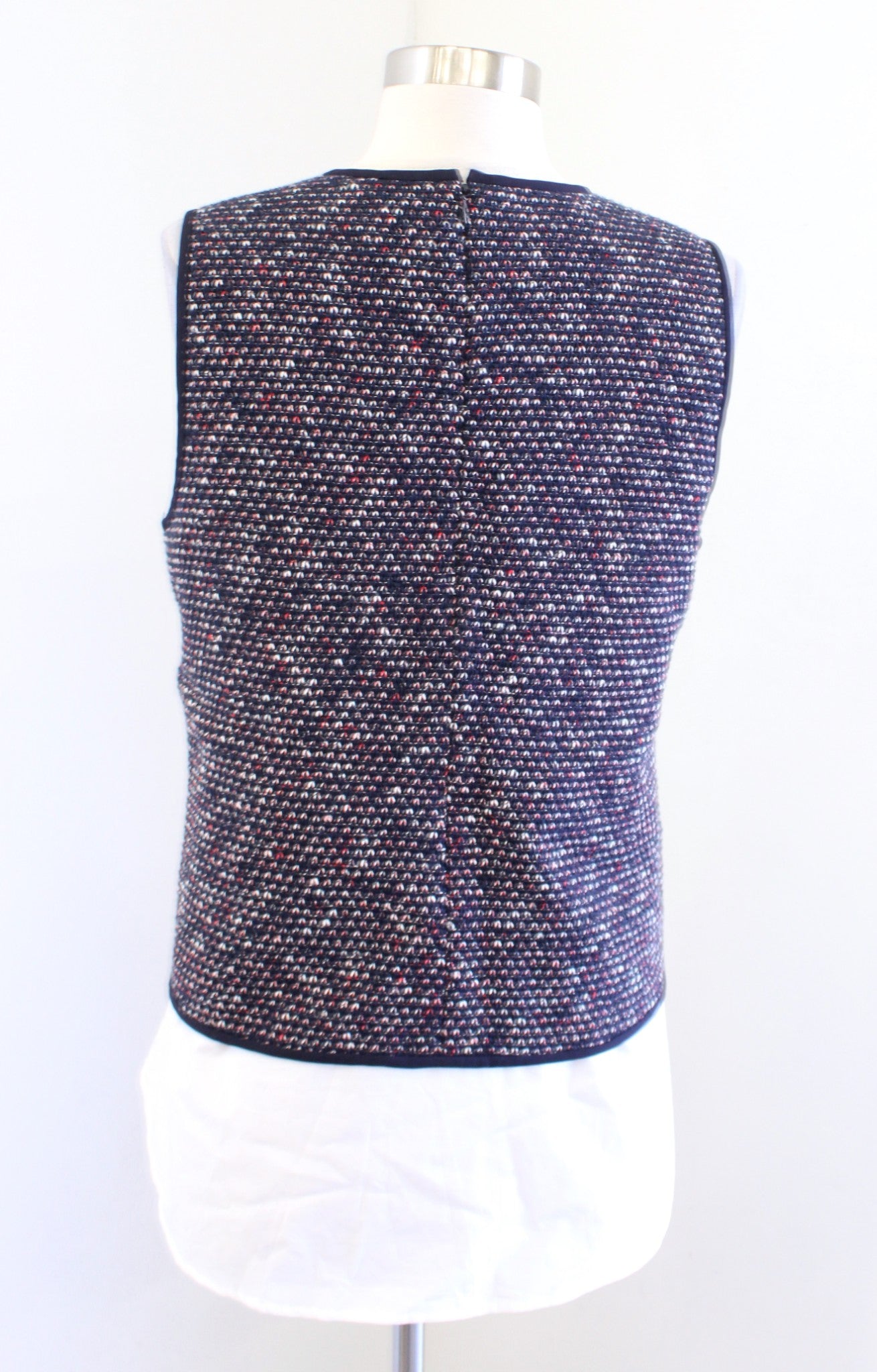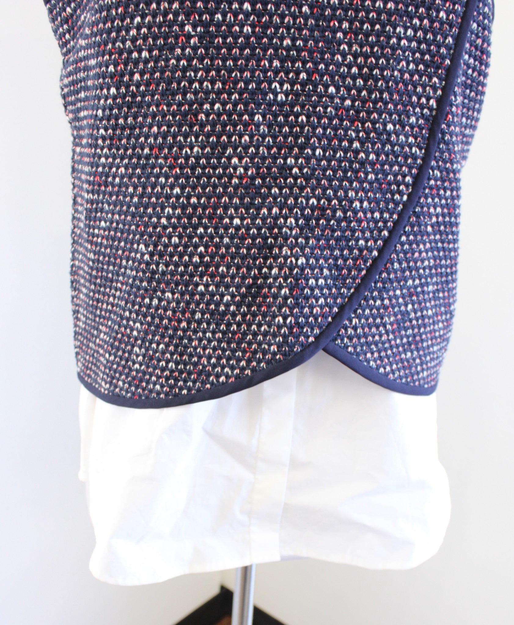 Derek Lam 10 Crosby Navy Blue Tweed Mixed Media Layered Combo Top Blouse Size 10 Sleeveless