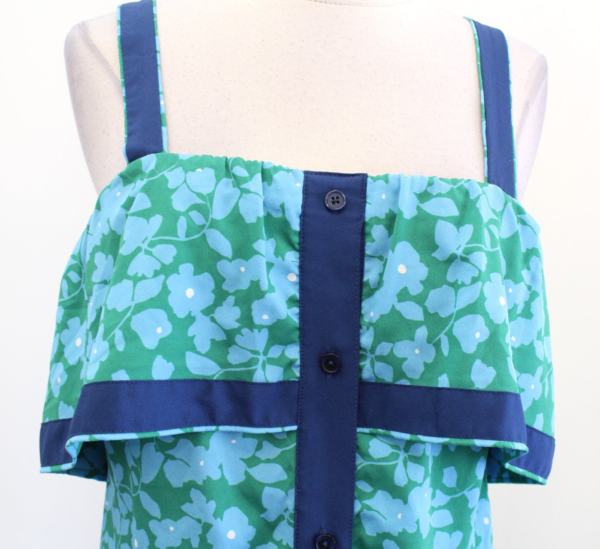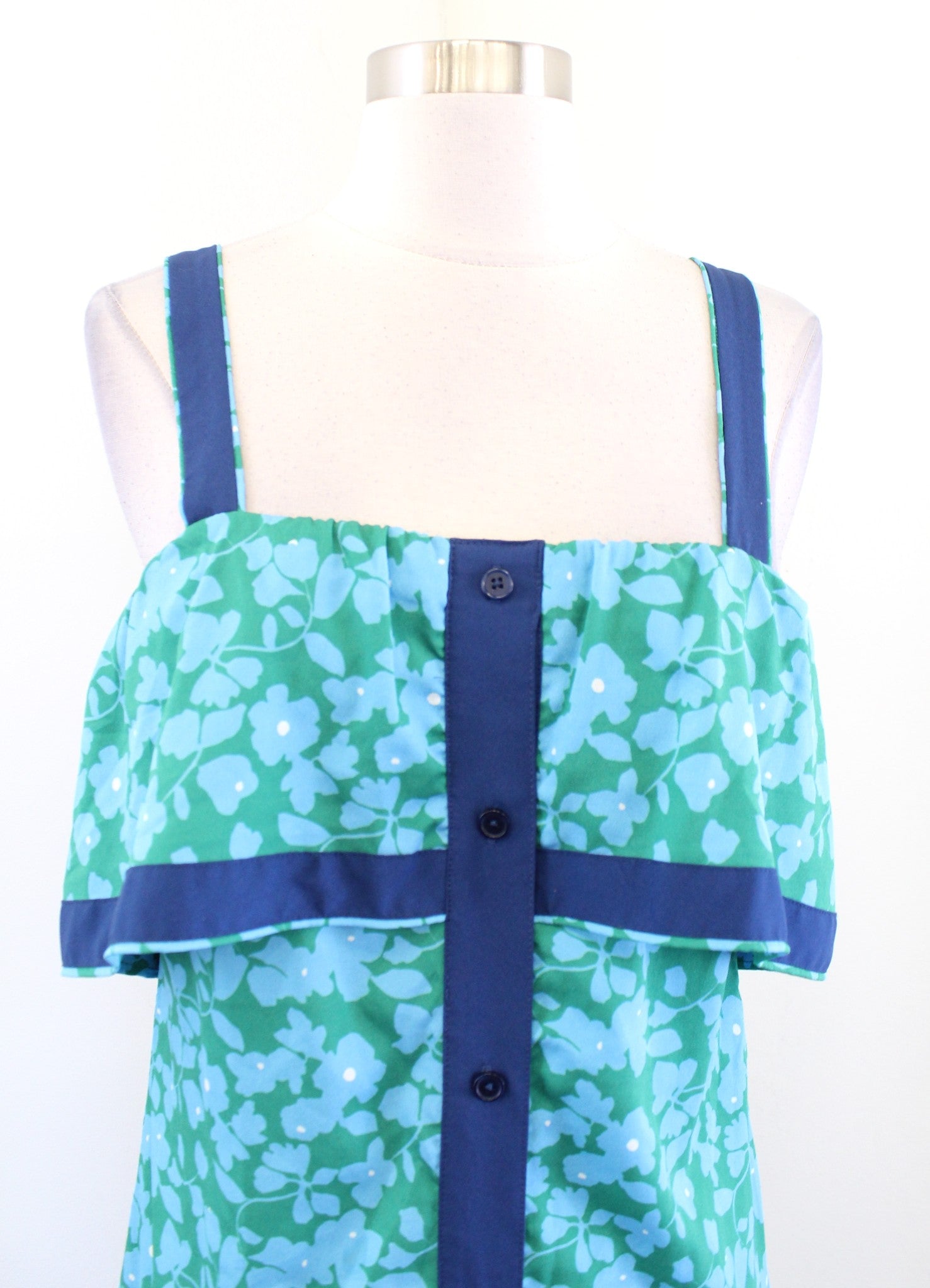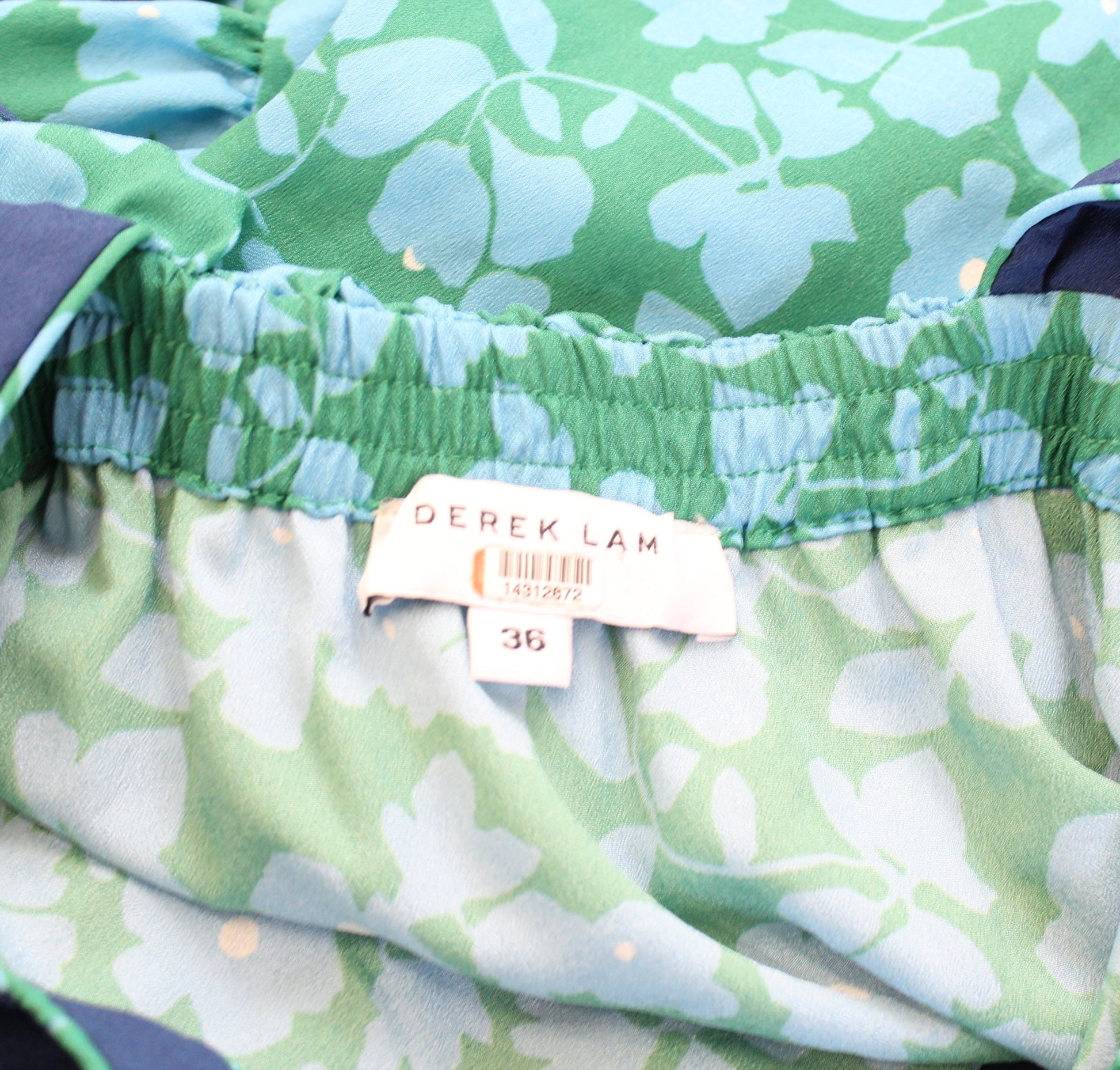 Derek Lam Blue Green Floral Ruffle Popover Casual Midi Dress Size 36 Summer