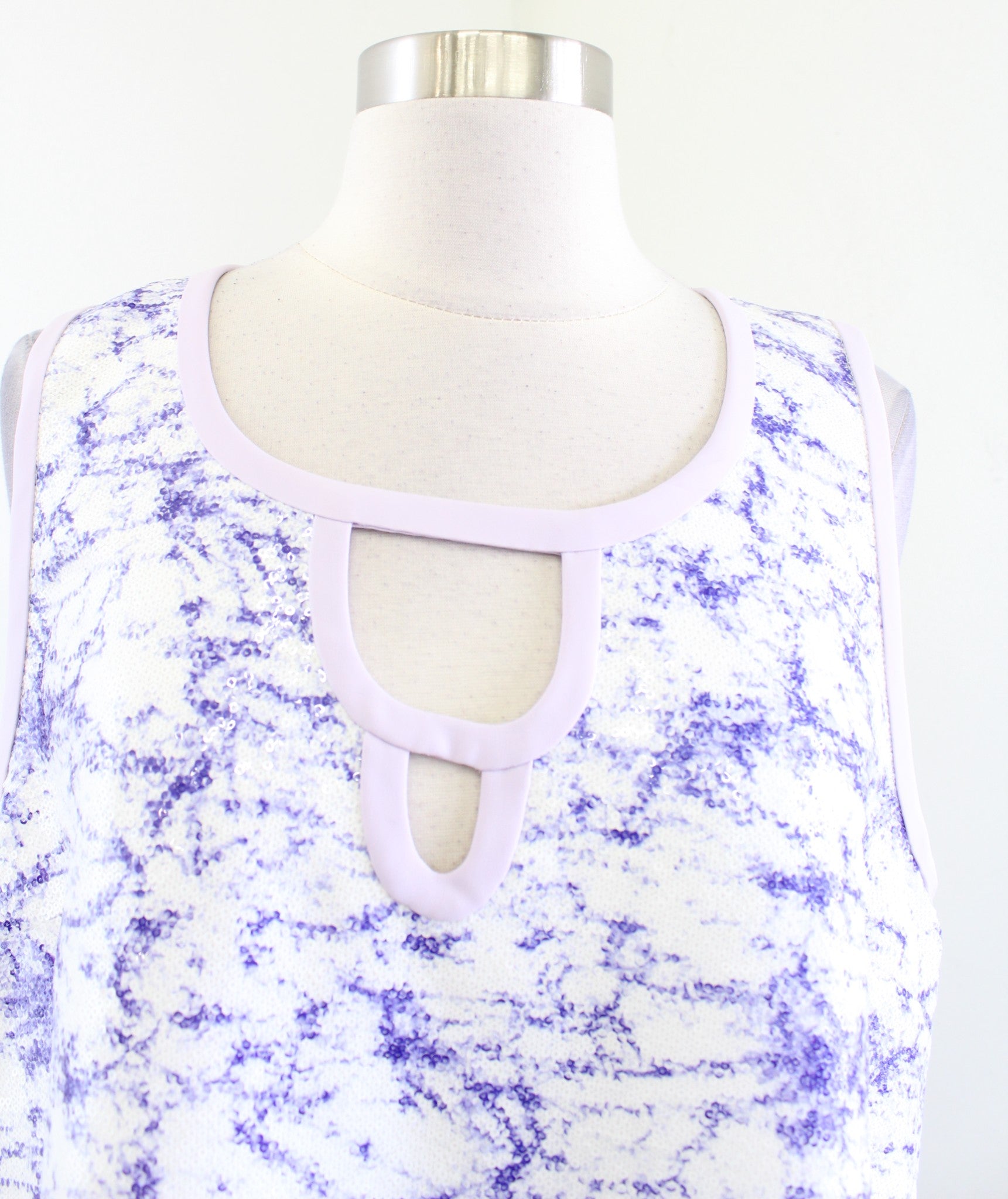 Diane Von Furstenberg Laci Purple White Sequin Hi Lo Tank Top Blouse Tie Dye 14
