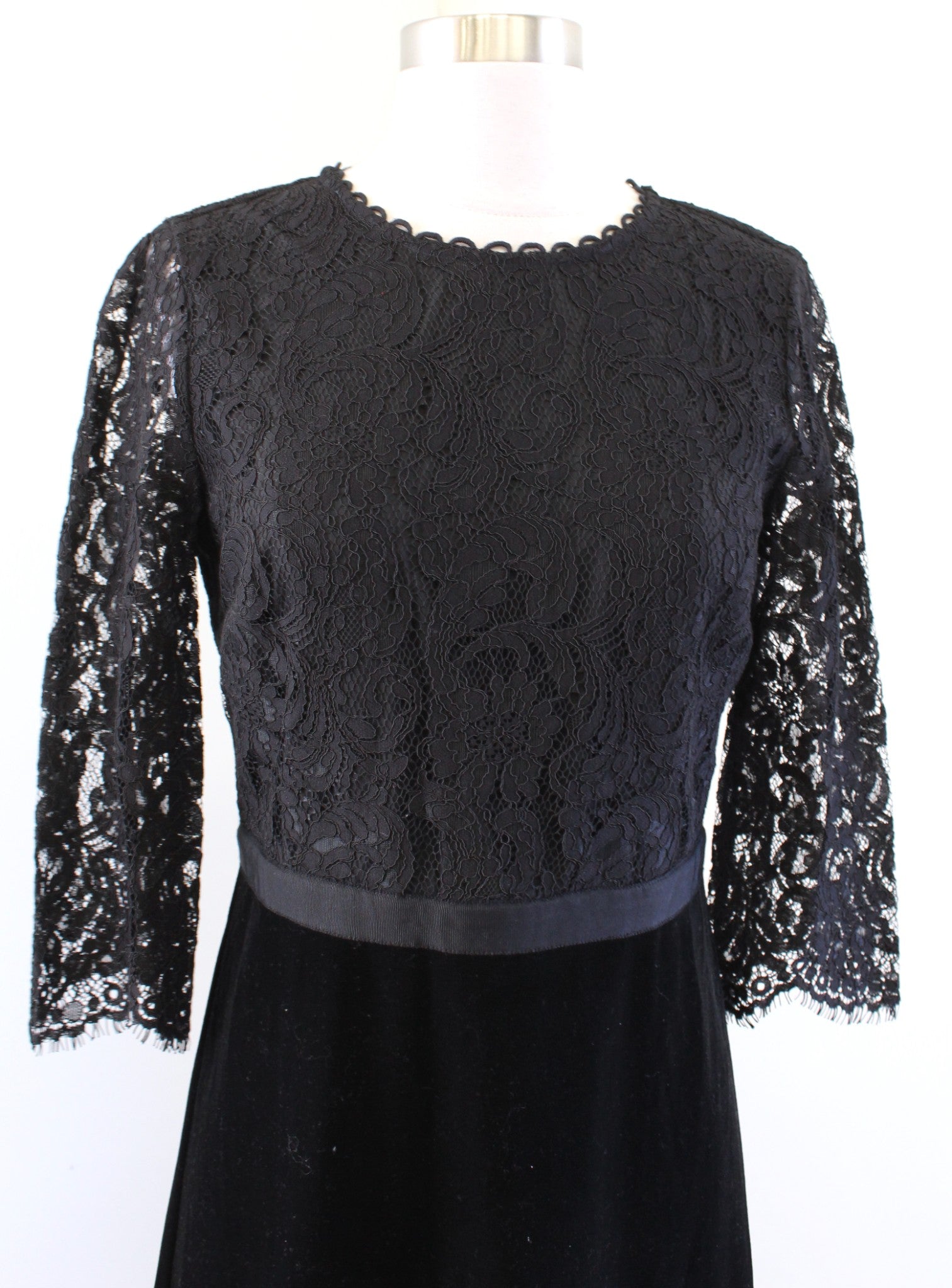 Draper James Black Velvet Lace Contrast Cocktail Party Dress Sz 2 A Line Sheath