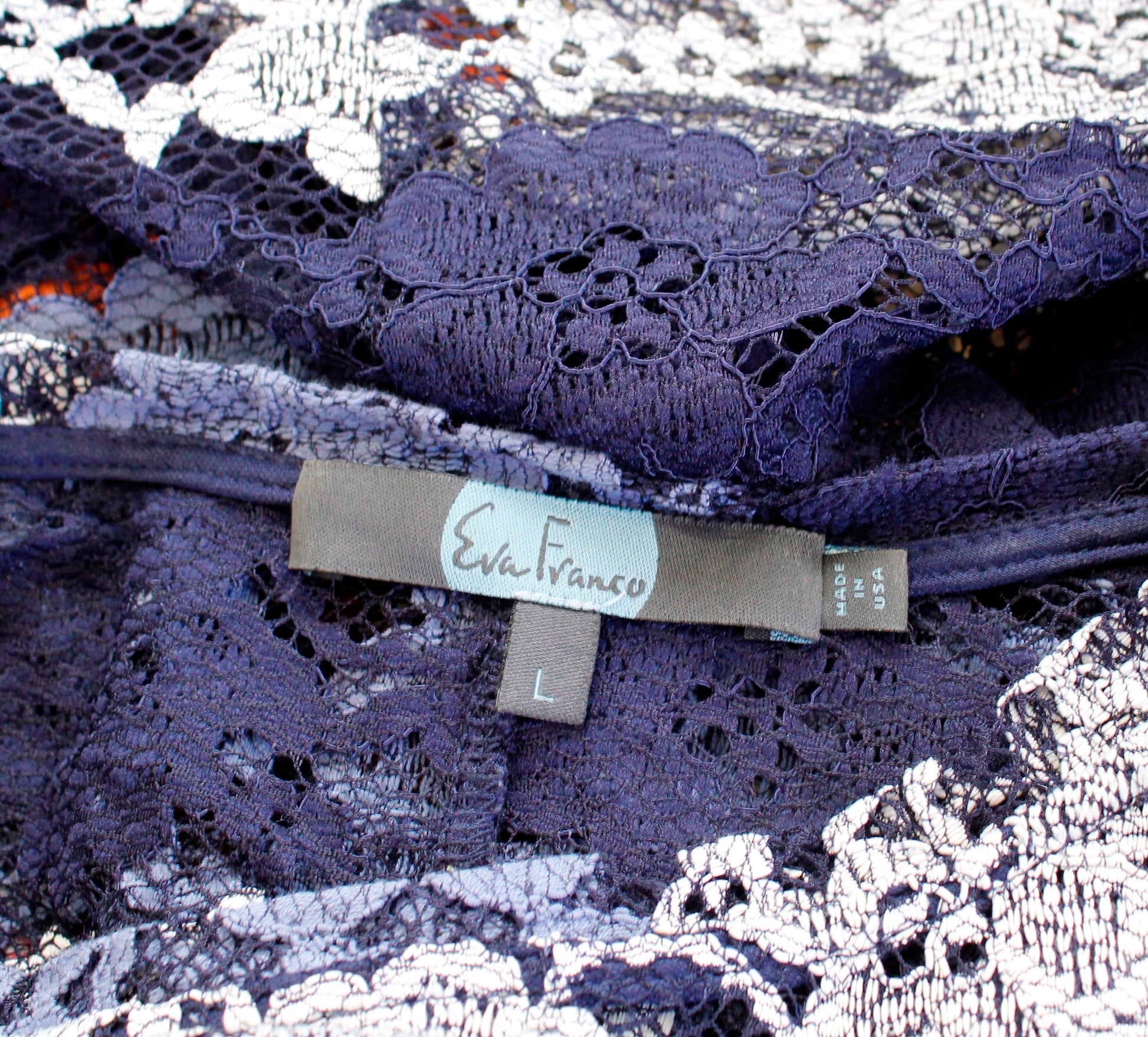 Eva Franco Anthropologie Sheer Striped Lace Peplum Top Blouse Size L Navy Blue Short Sleeve