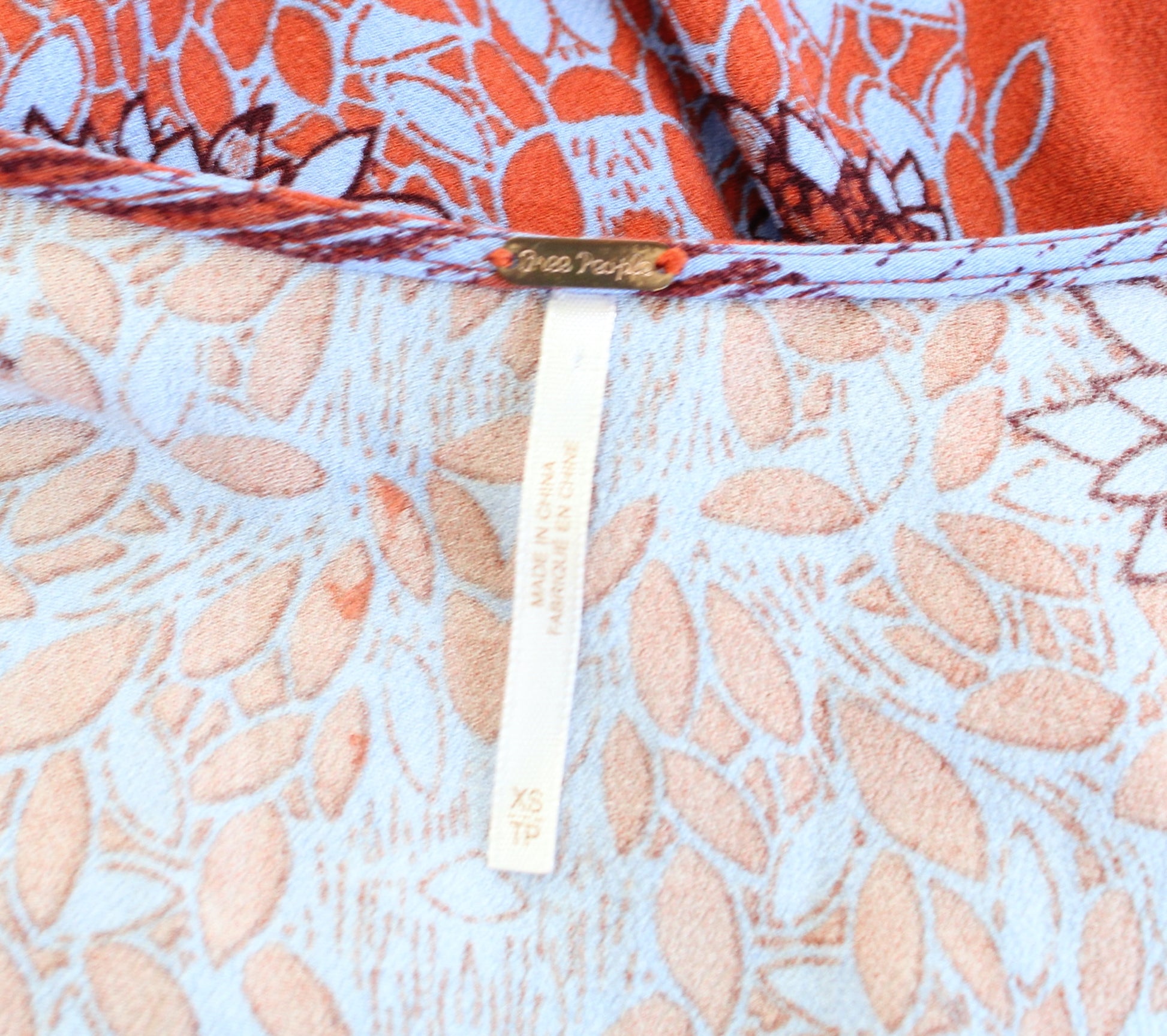 Free People Birds of a Feather Orange Floral Printed Top Blouse Size XS V Neck