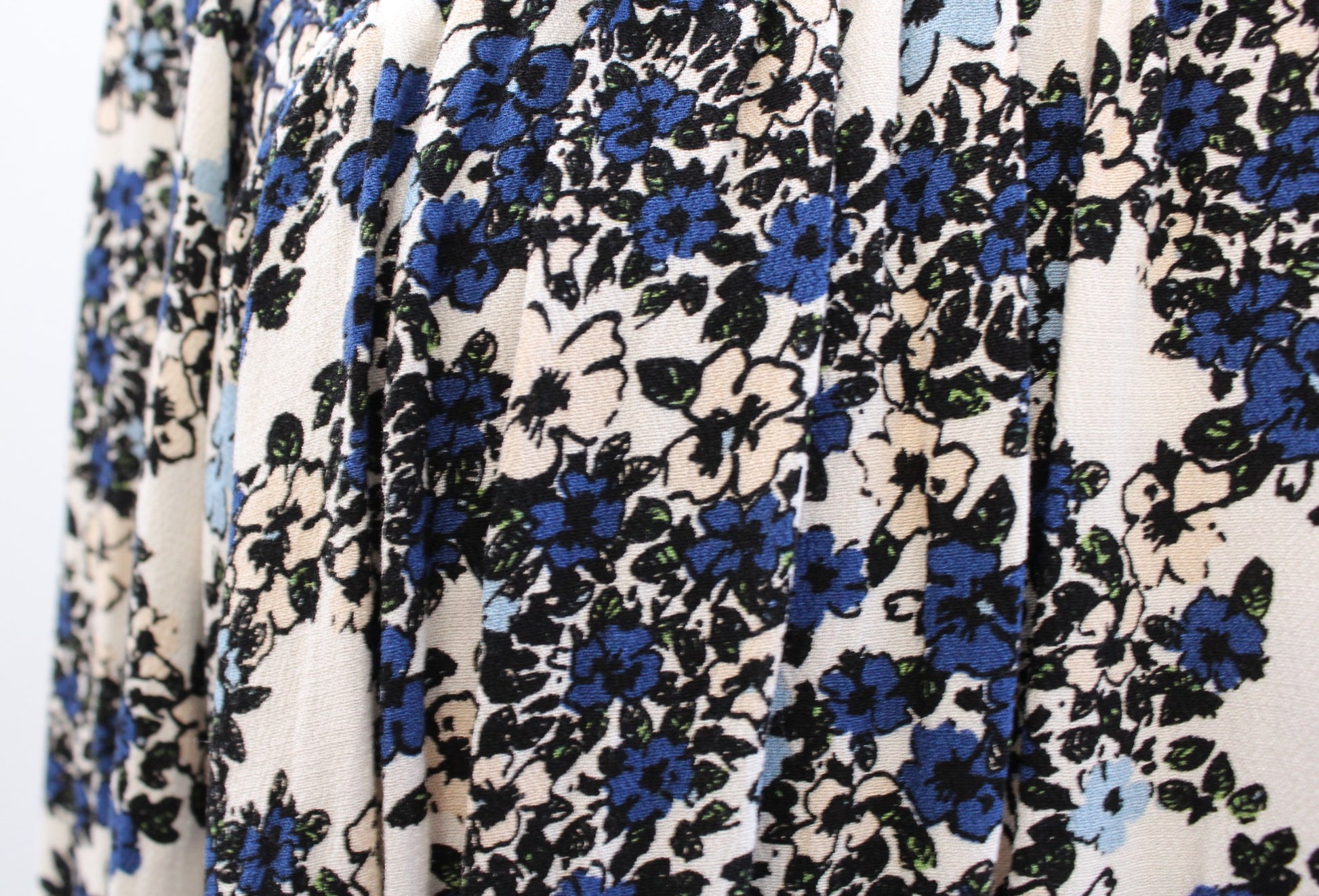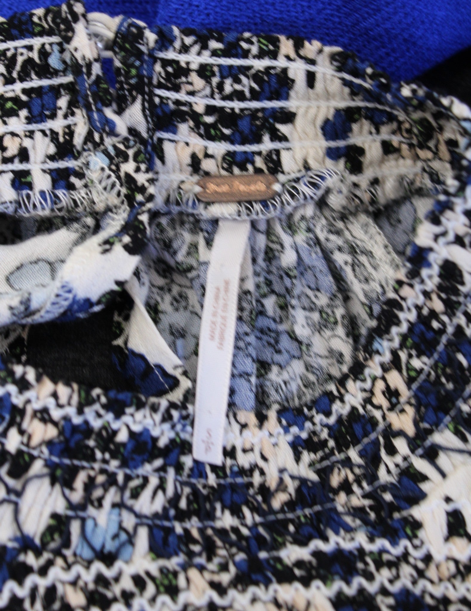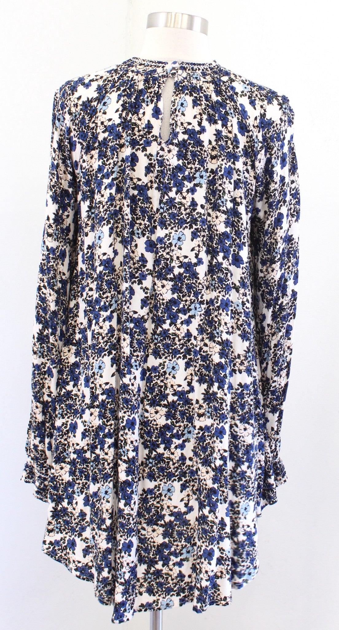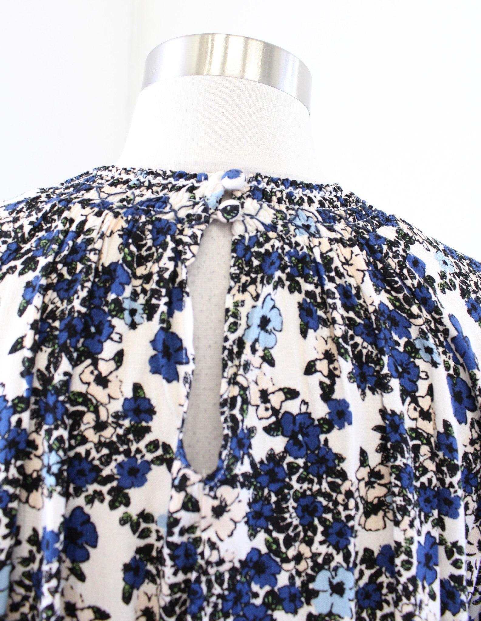 Free People Flowers in Her Hair Floral Smocked Tunic Top Blouse Sz S Cream Blue
