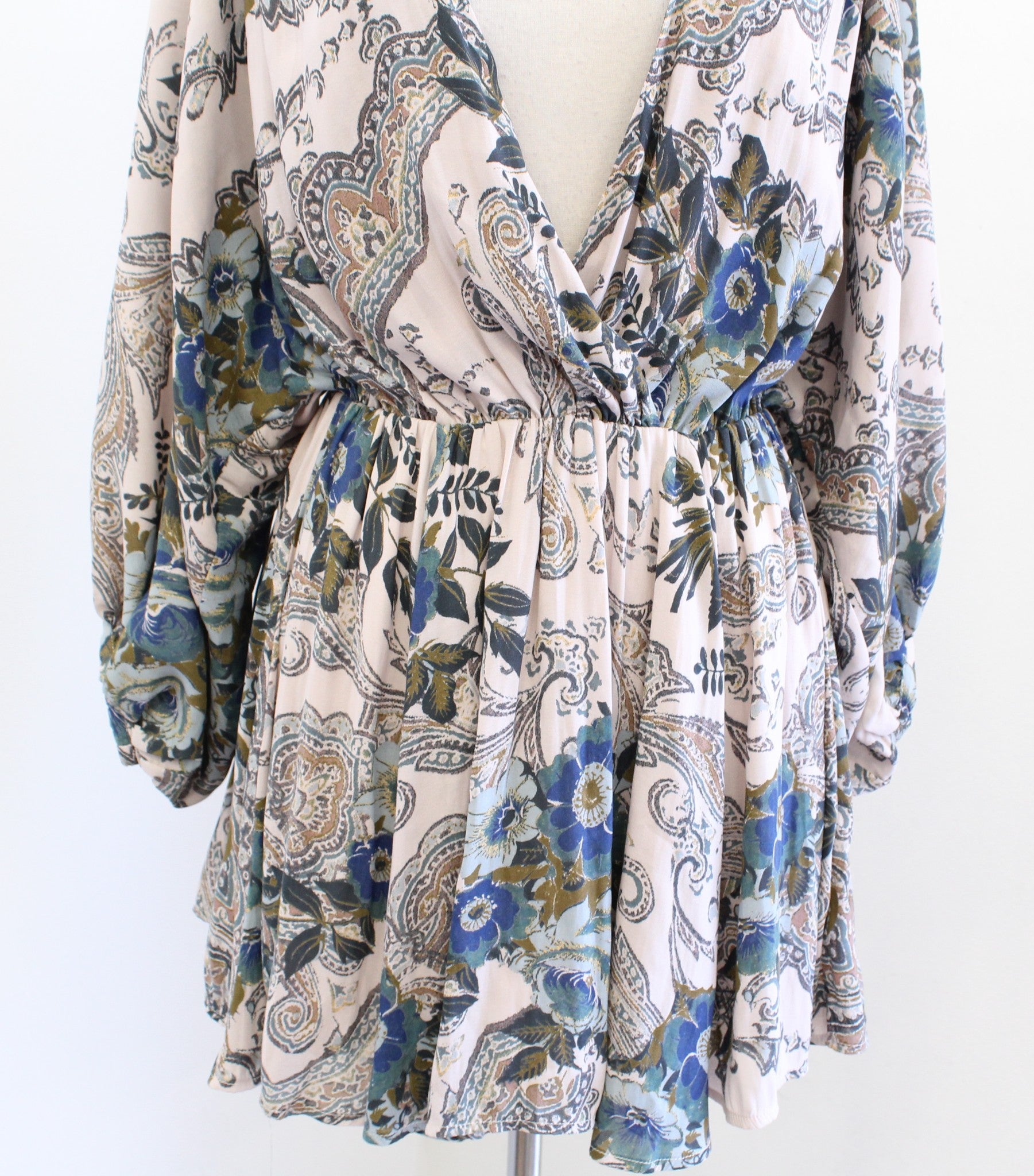 Free People High Plains Paisley Floral Plunge V Neck Mini Tunic Dress Size XS