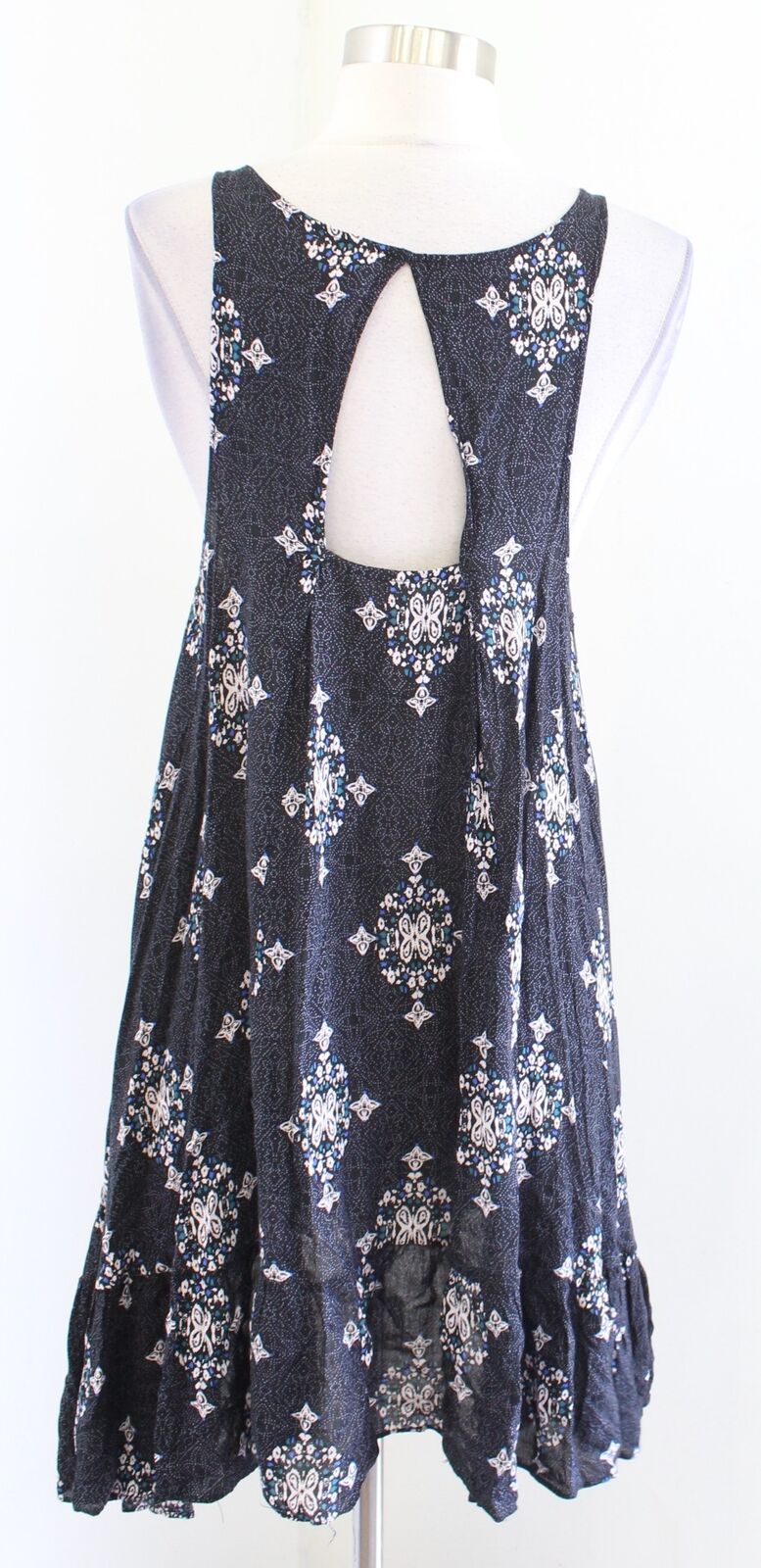 Free People Into You Black Blue Geometric Asymmetrical Slip Mini Dress Size XS