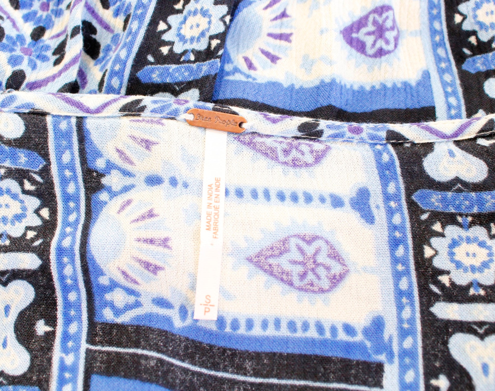 Free People Rosalie Indigo Combo Blue Printed Faux Wrap Top Blouse Size S Boho