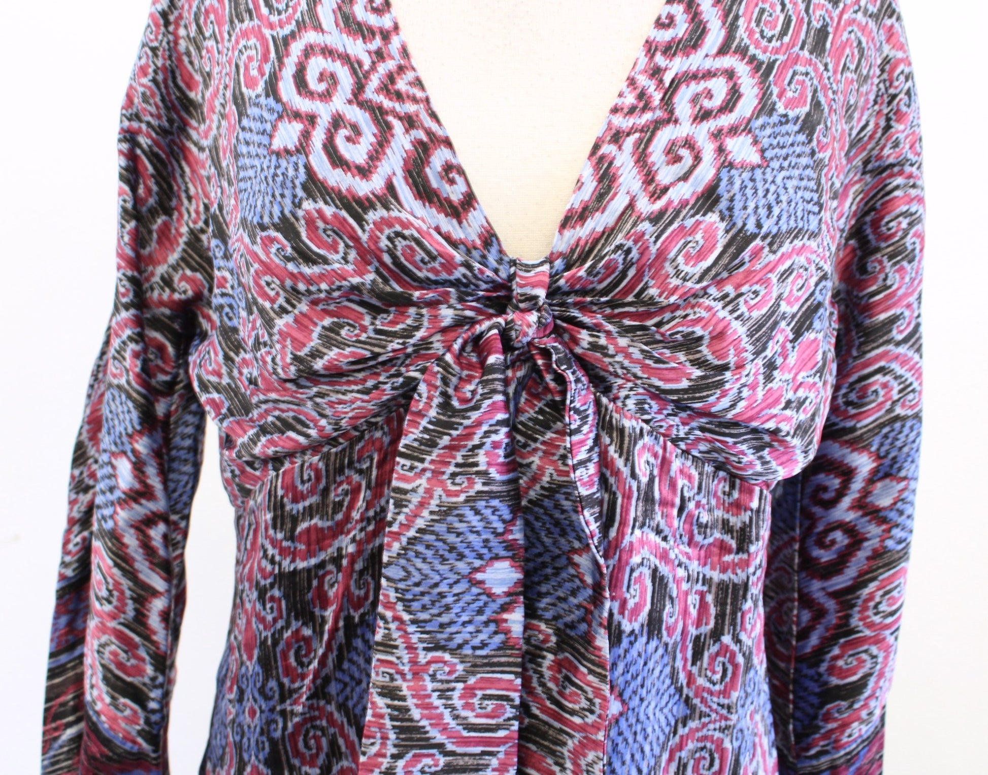 Hale Bob 2000s Y2k Silk Blend Tie Front V Neck Top Blouse Medallion Boho Size M