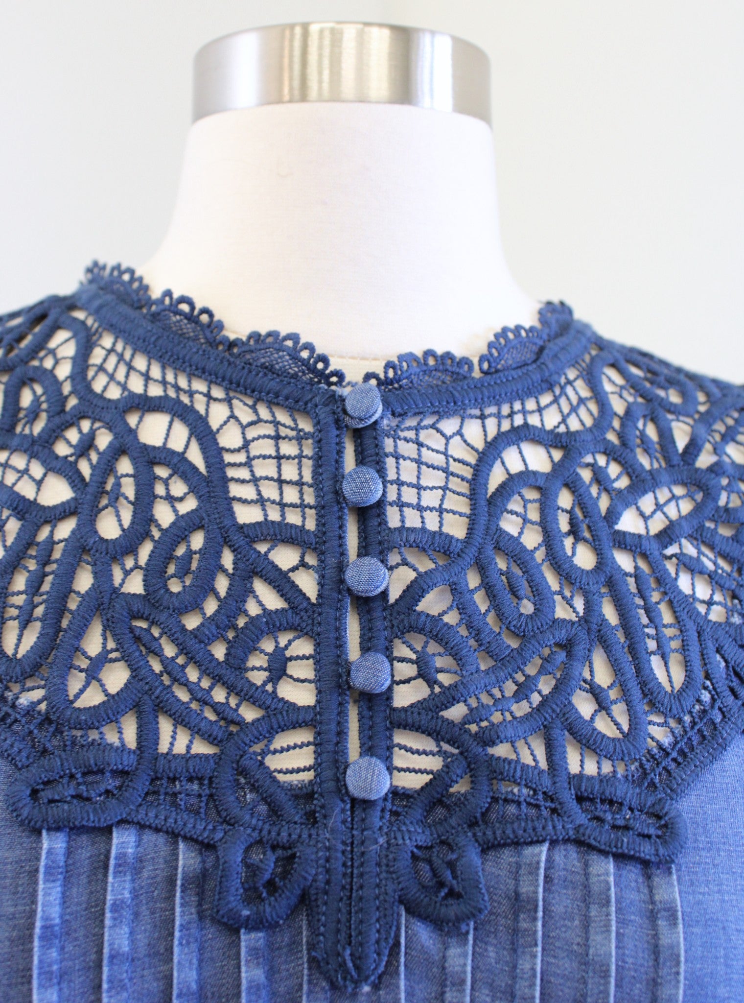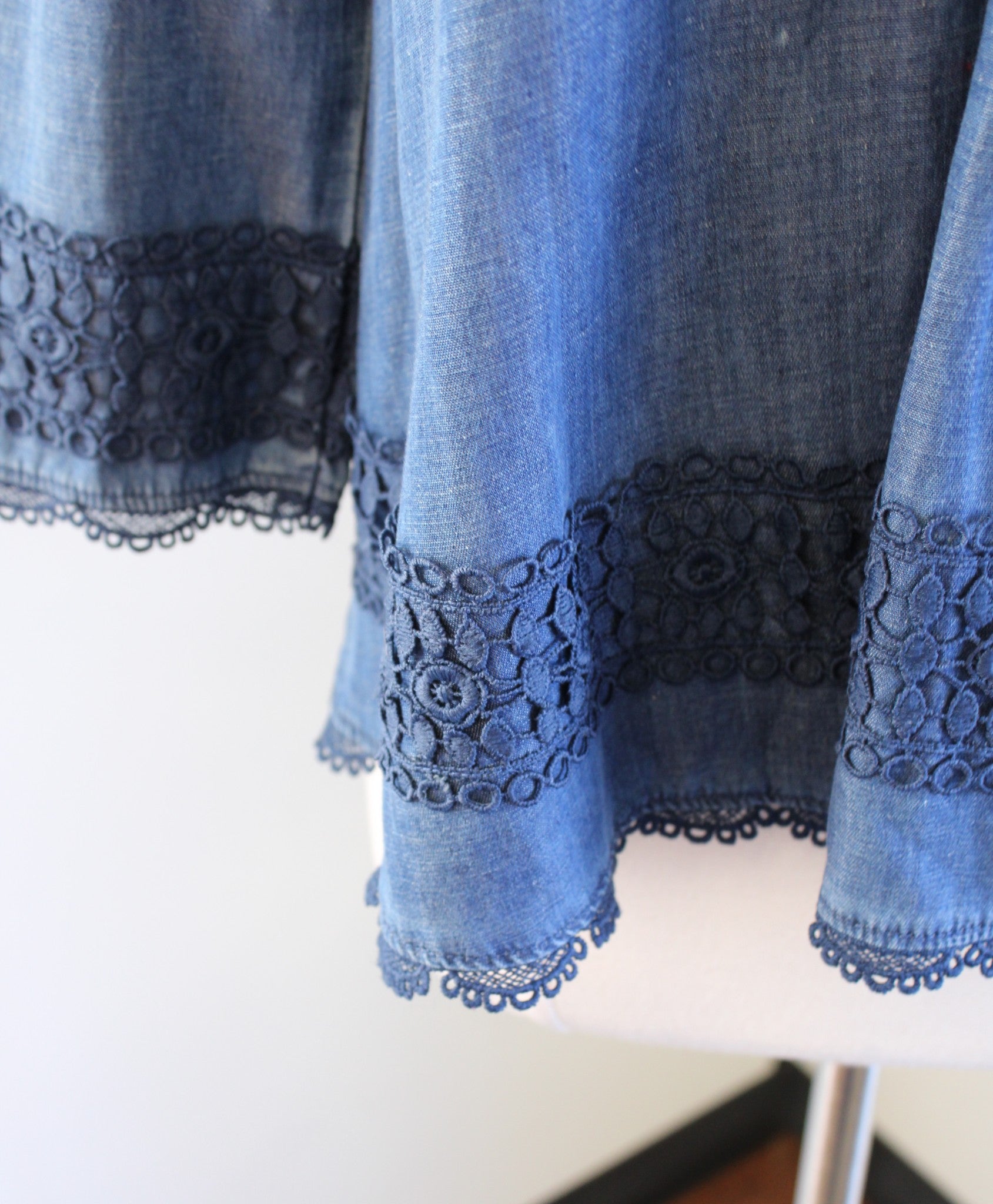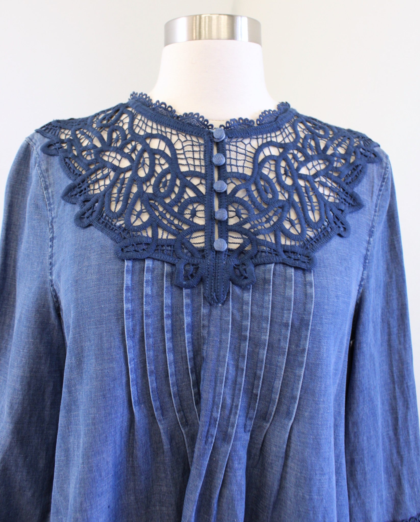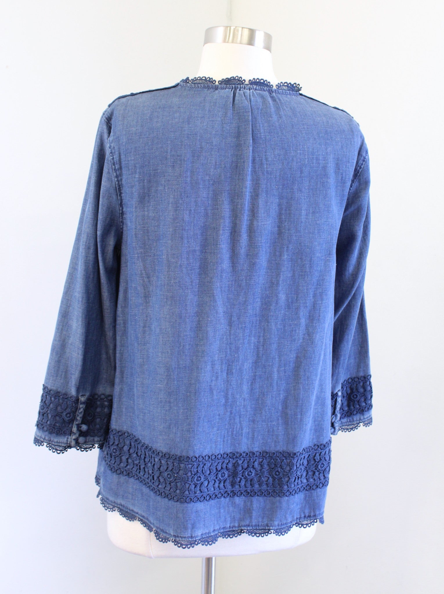 Holding Horses Anthropologie Perra Blue Lace Chambray Popover Blouse Top Size 6