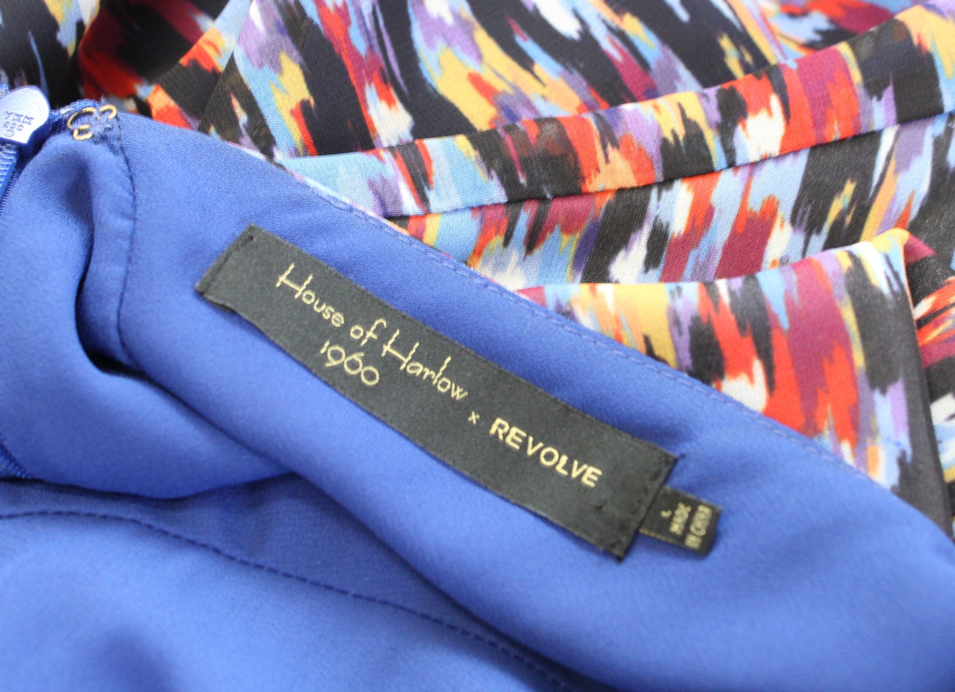 House of Harlow x Revolve Gemma Printed Midi Slip Dress Size L Open Back Blue
