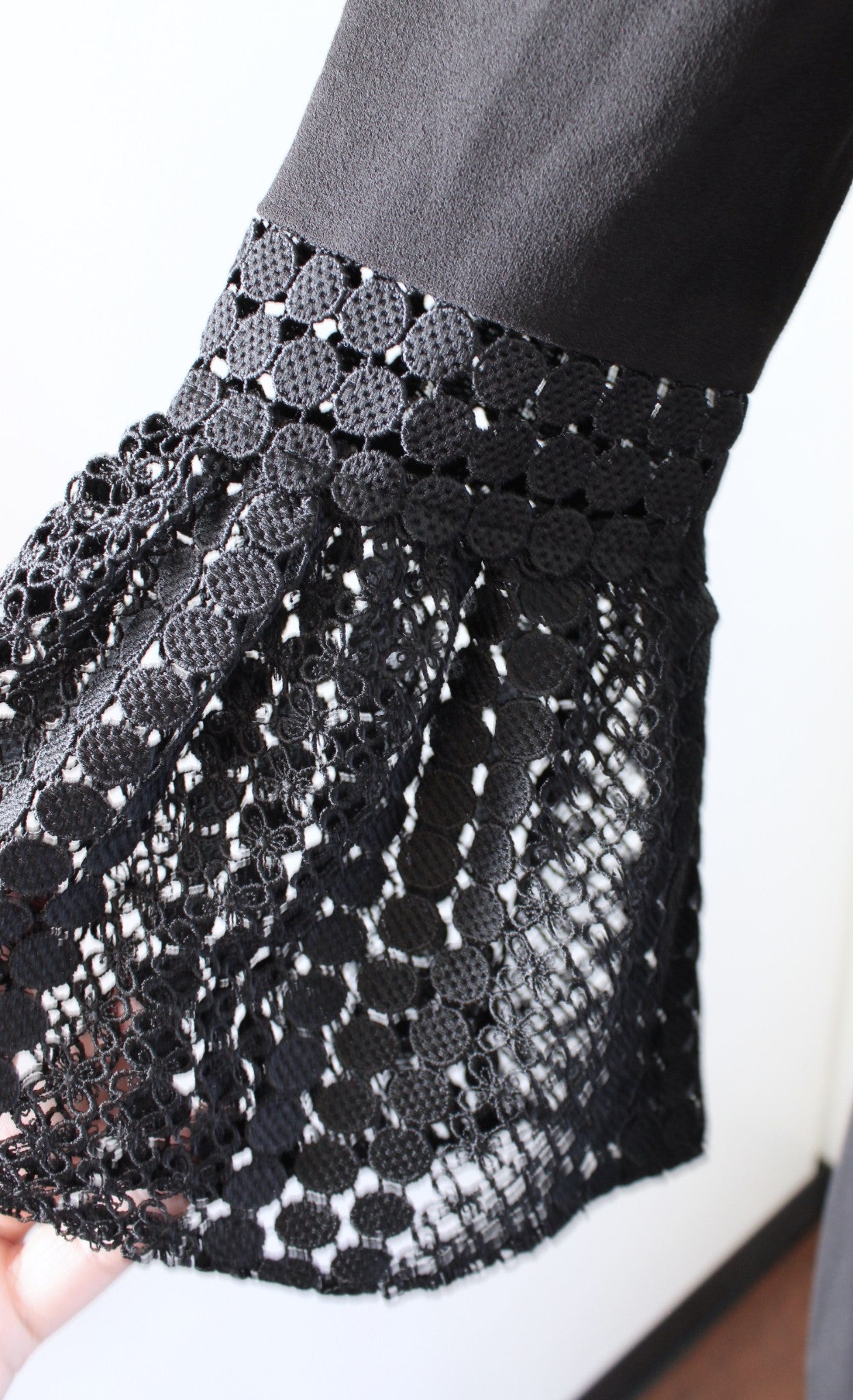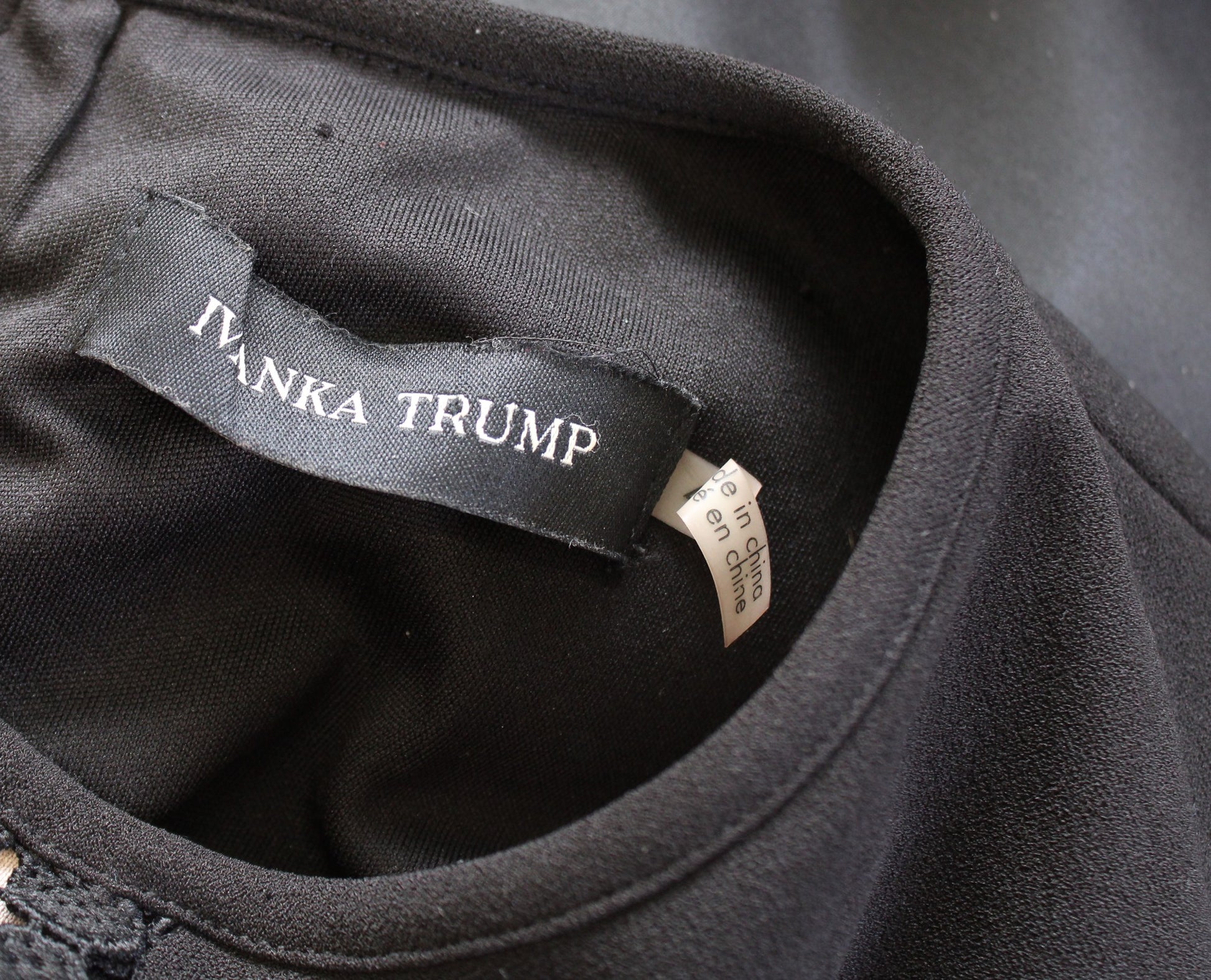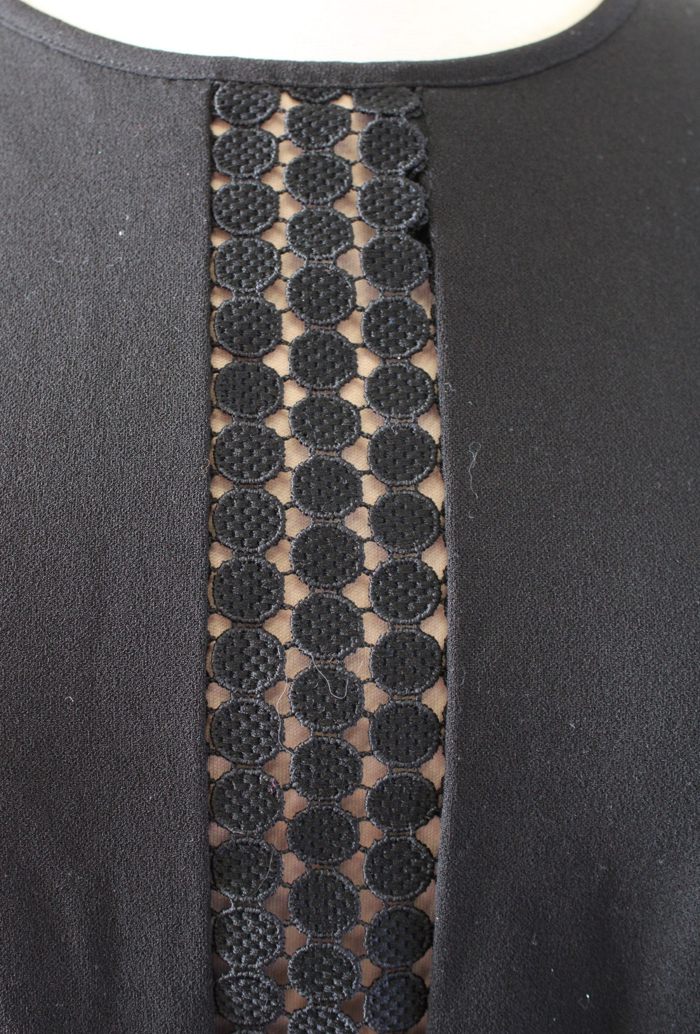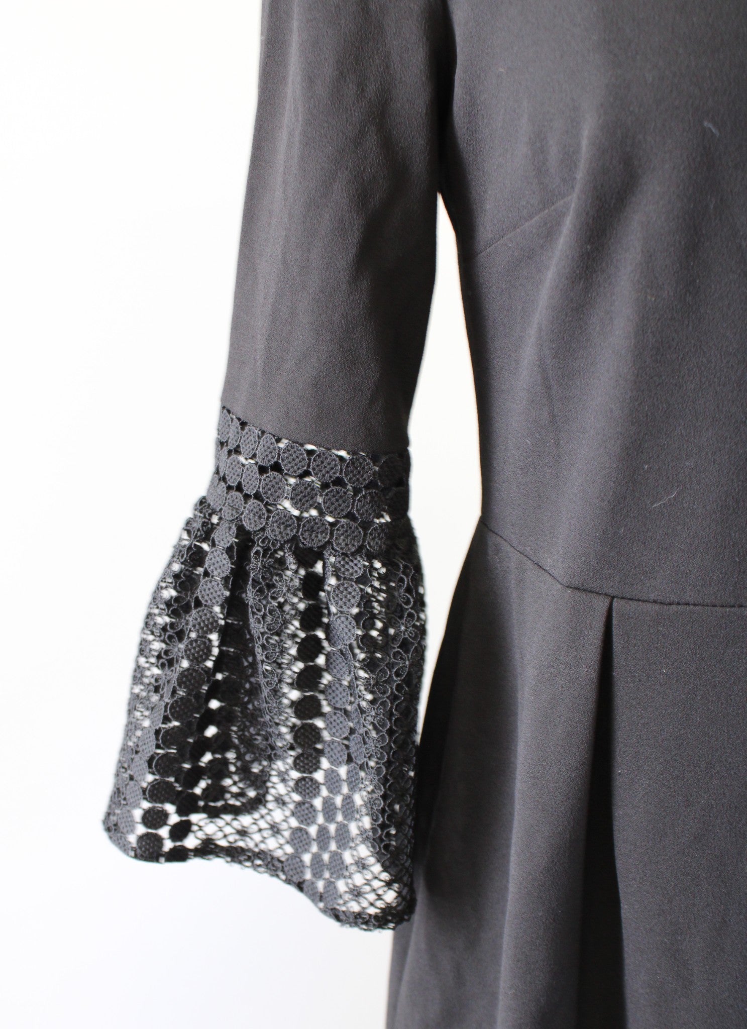 Ivanka Trump Black Nude Eyelet Insert Crochet Bell Sleeve Sheath Dress Size 4