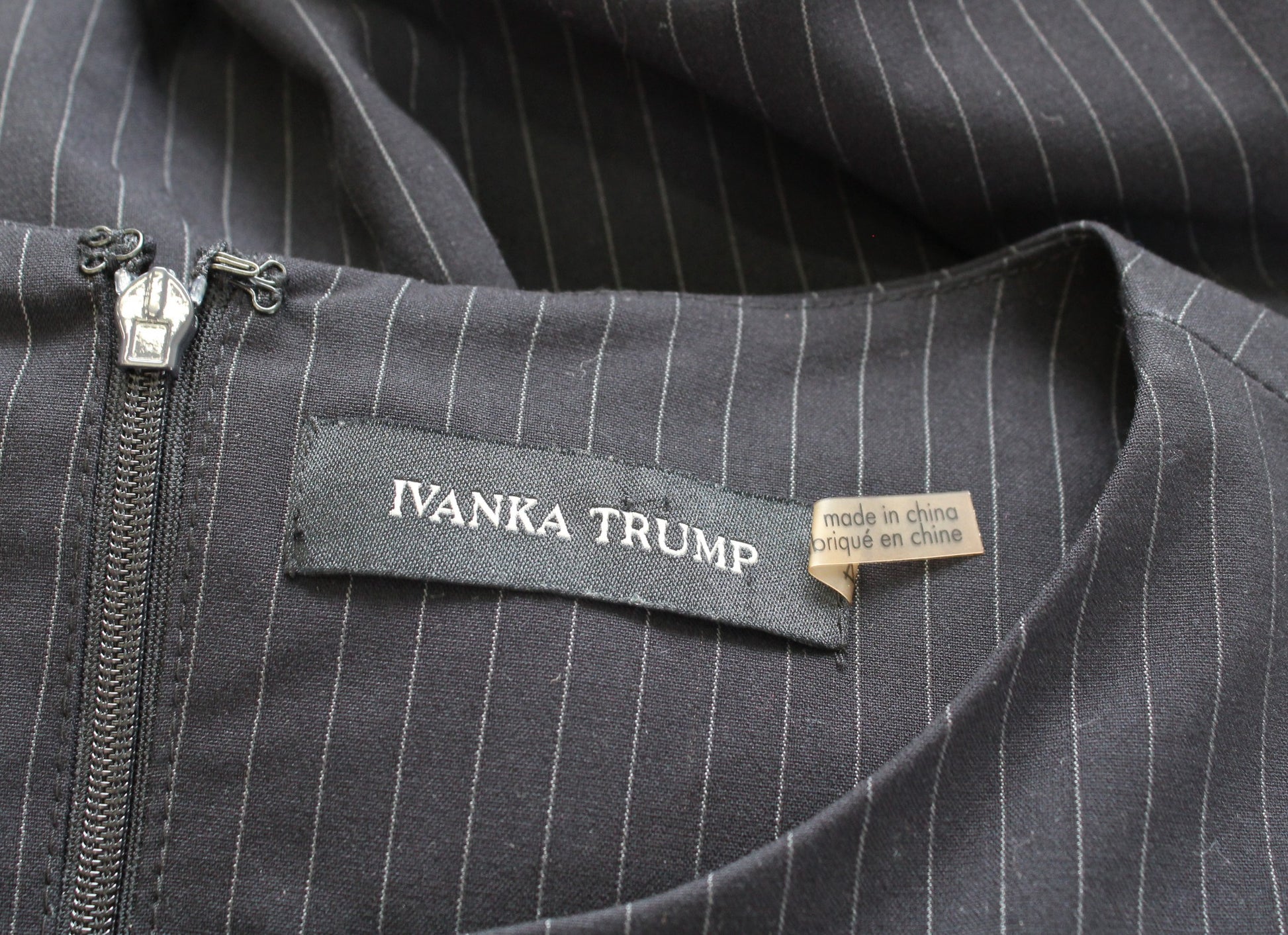 Ivanka Trump Navy Blue Pinstripe Faux Wrap Ruched Sheath Dress Size 4 Career
