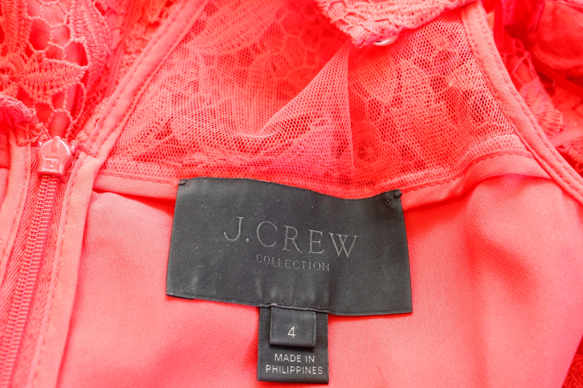 J Crew Collection Poppy Coral Floral Lace Sheath Dress Sz 4 Sleeveless Cocktail
