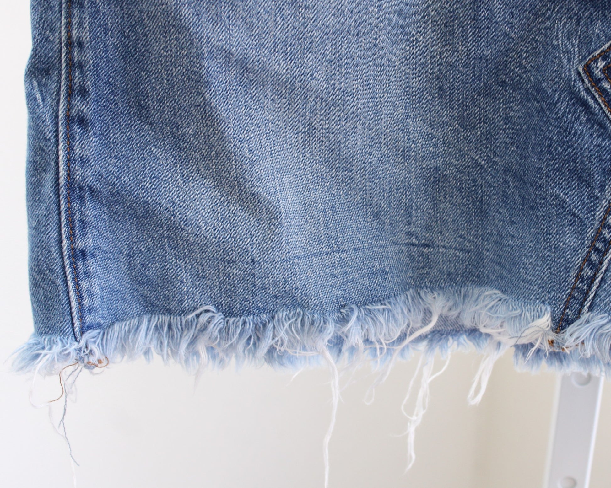 J Crew Jeans Womens Denim Skirt in Birch Wash Size 32 Frayed Hem