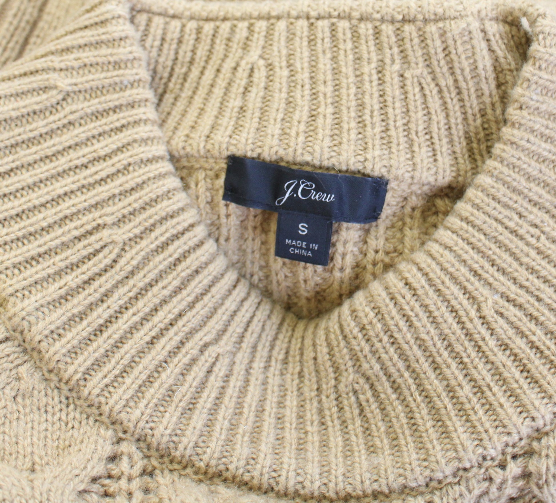 J Crew Womens Tan Pompom Cable Knit Pullover Sweater Size S Lambswool