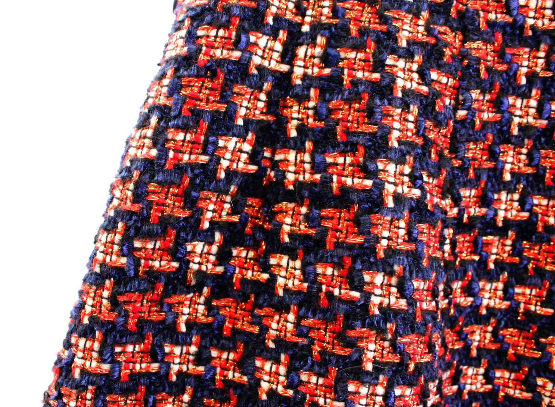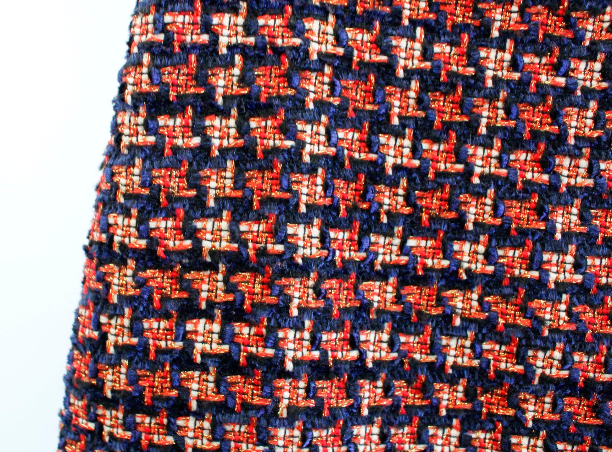 J McLaughlin Navy Blue Red Gold Metallic Houndstooth Tweed Pencil Skirt Size 10
