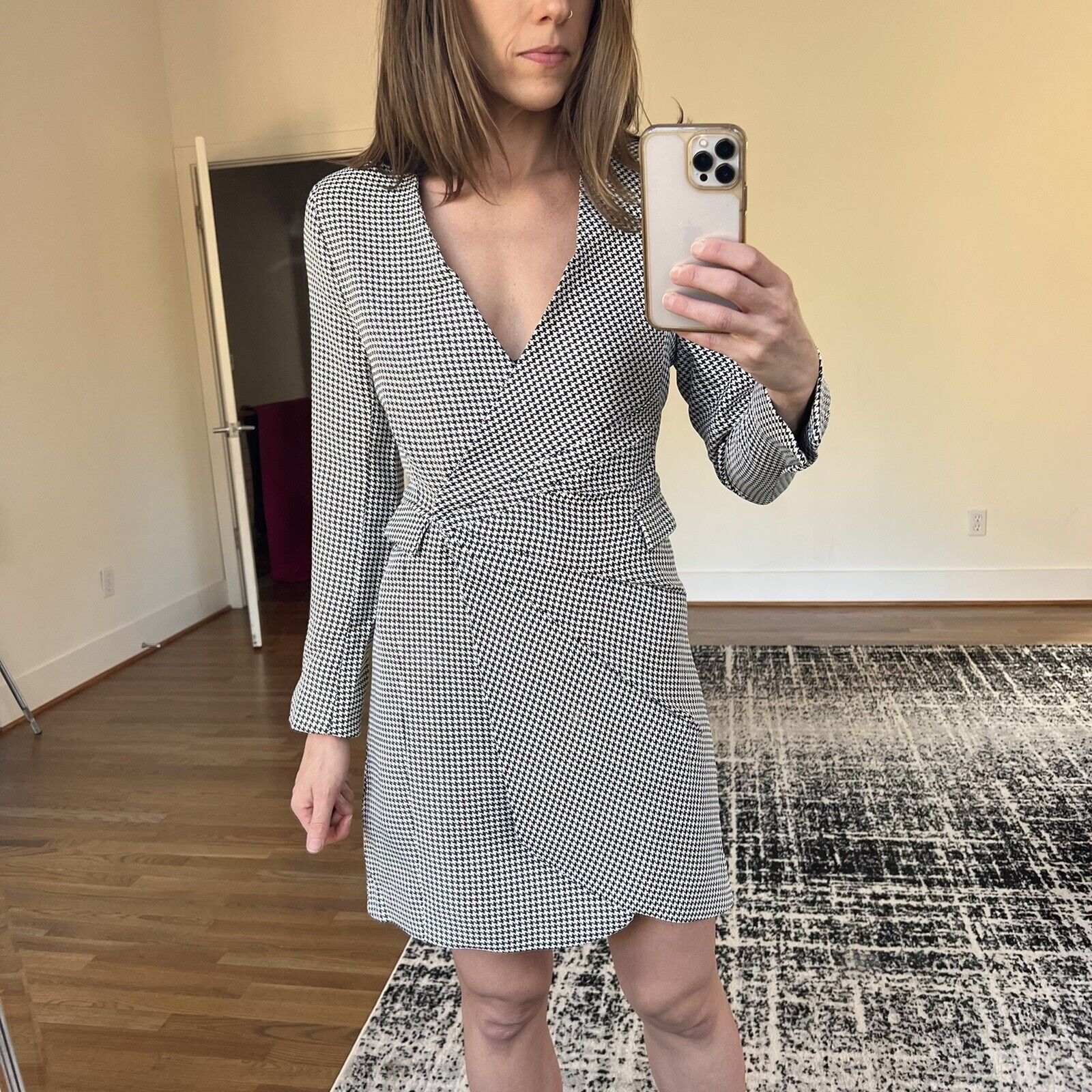 Jason Wu Black White Houndstooth Wrap Front Blazer Style Dress Size M V Neck