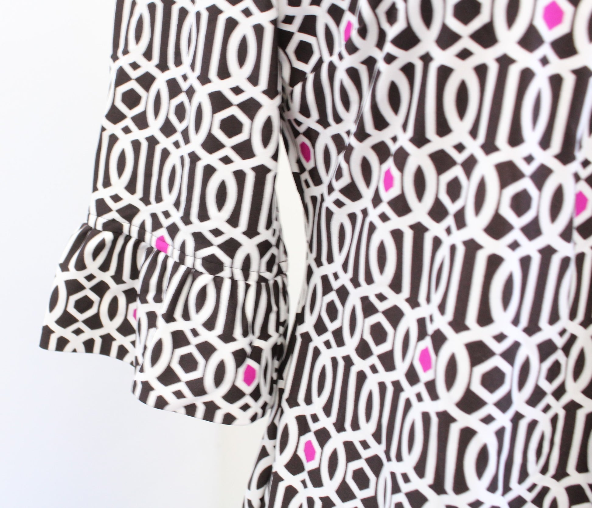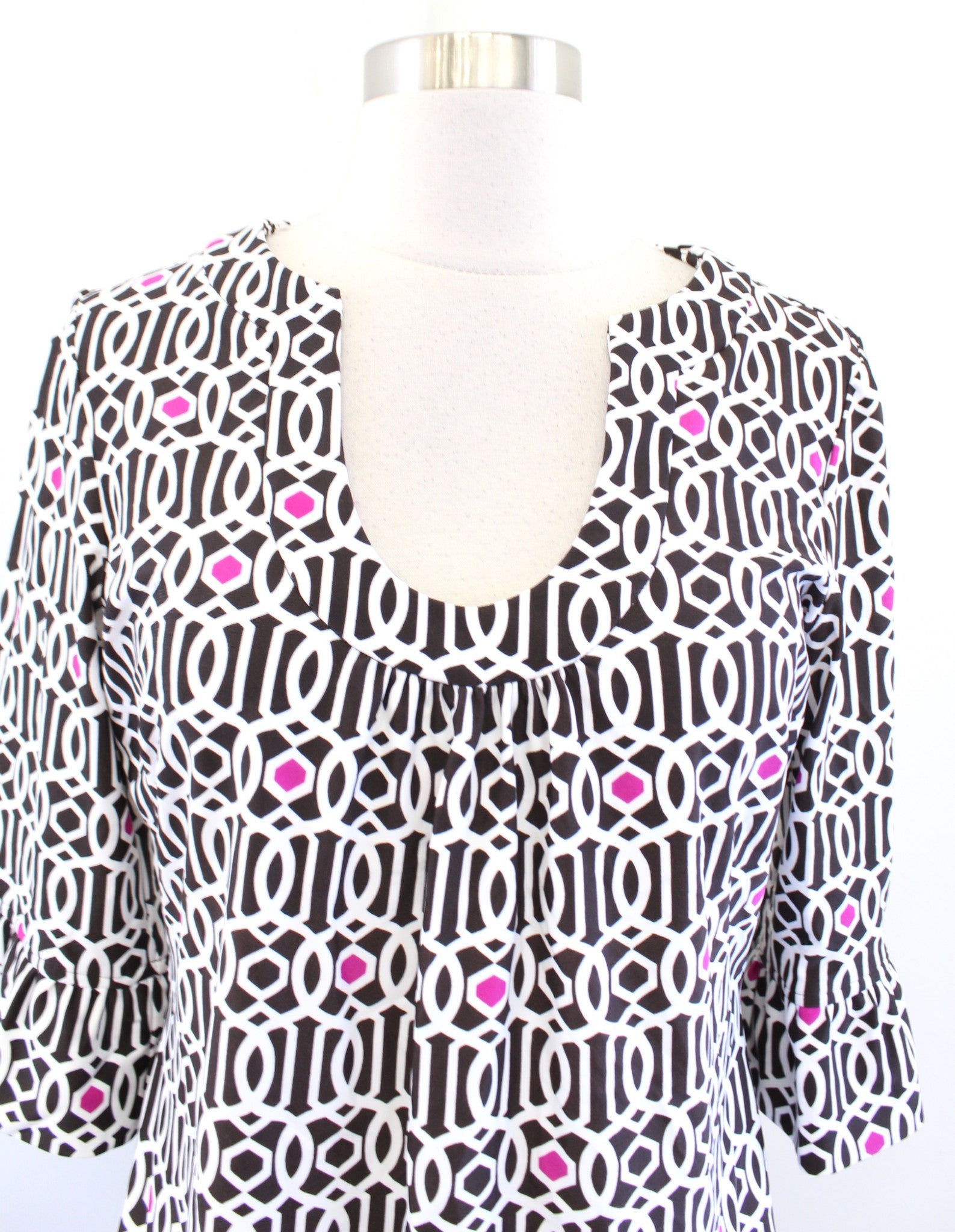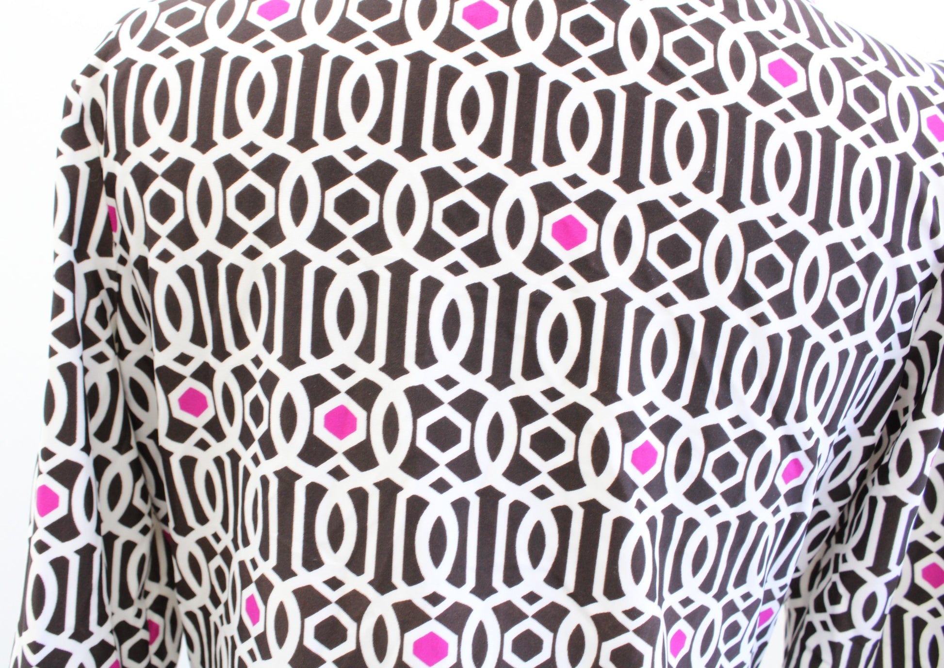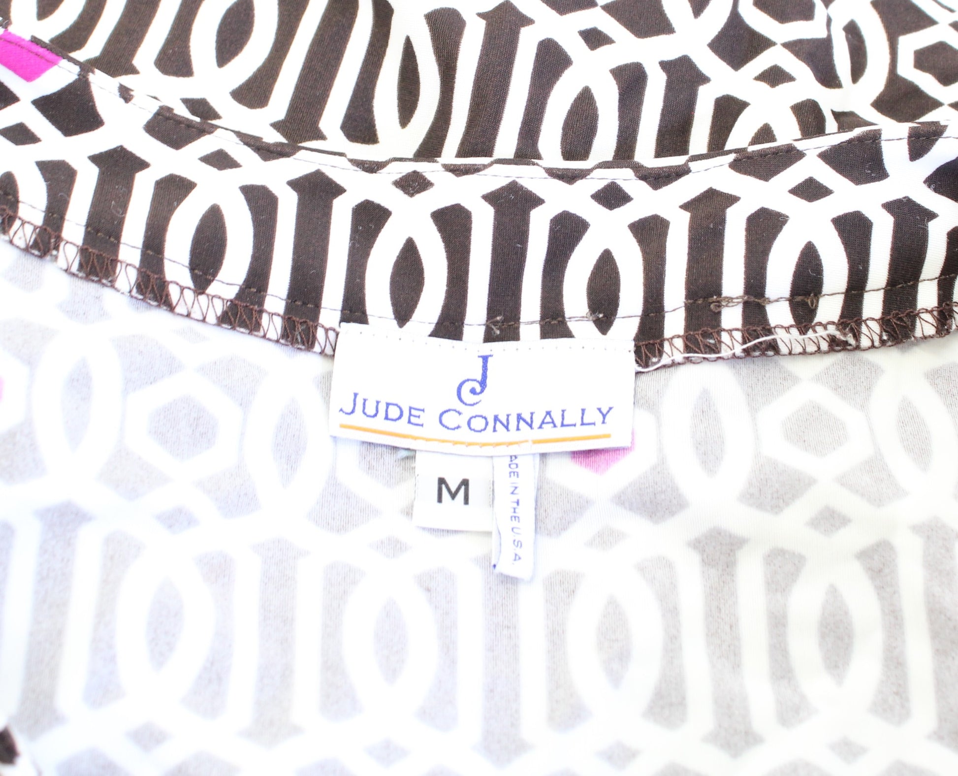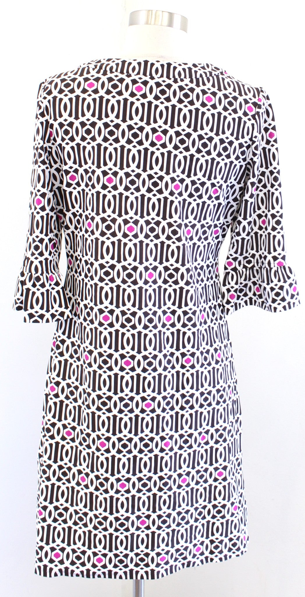 Jude Connally Jude Cloth Brown White Pink Geometric Print Notch Neck Dress Sz M
