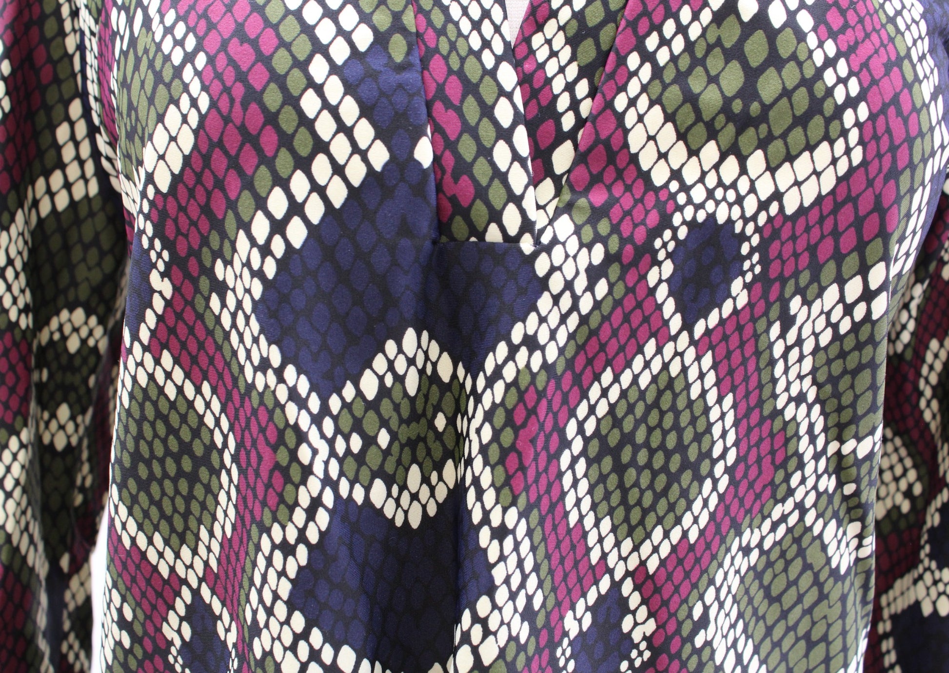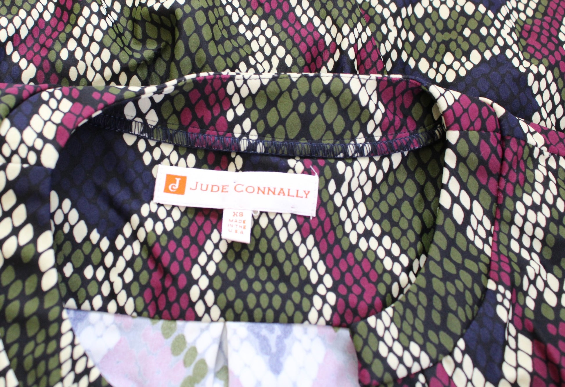 Jude Connally Snakeskin Print Split Neck Jude Cloth Top Blouse Size XS Navy