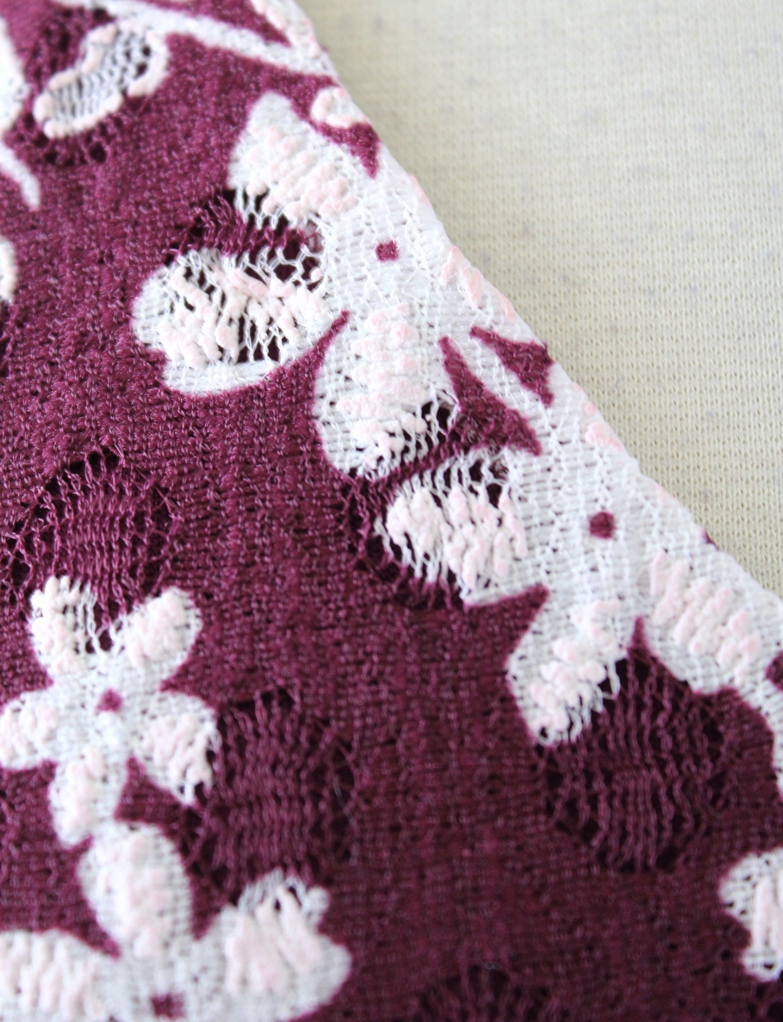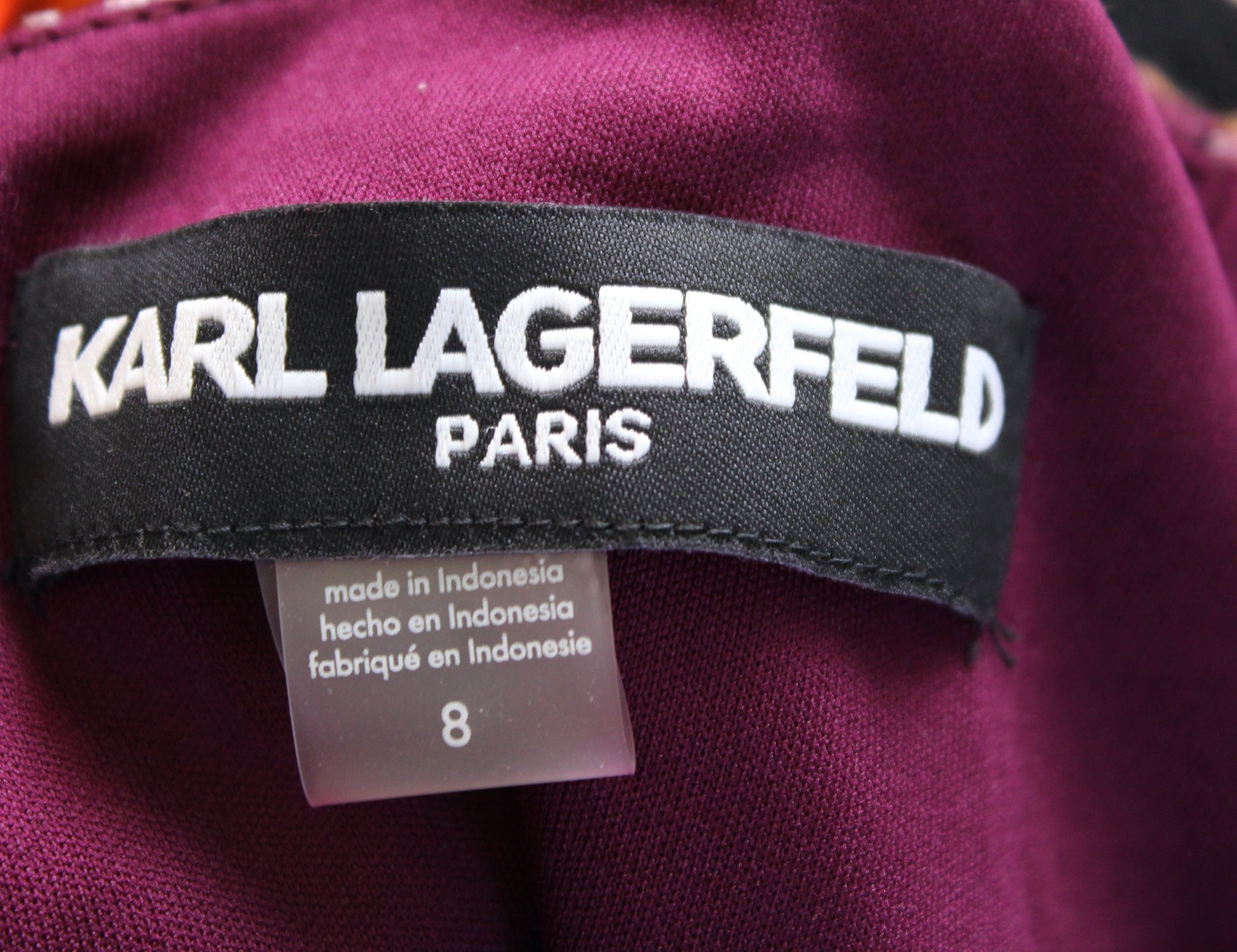 Karl Lagerfeld Burgundy White Pink Floral Lace Bell Sleeve V Neck Dress Size 8