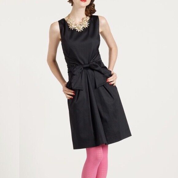 Kate Spade Jillian Black Bow Waist A Line Flared Dress Size 4 Cocktail Party