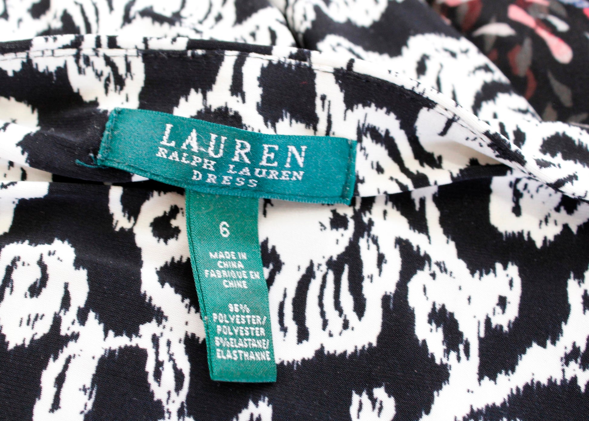 Lauren Ralph Lauren Black White Floral Print V Neck Ruched Wiggle Dress Size 6