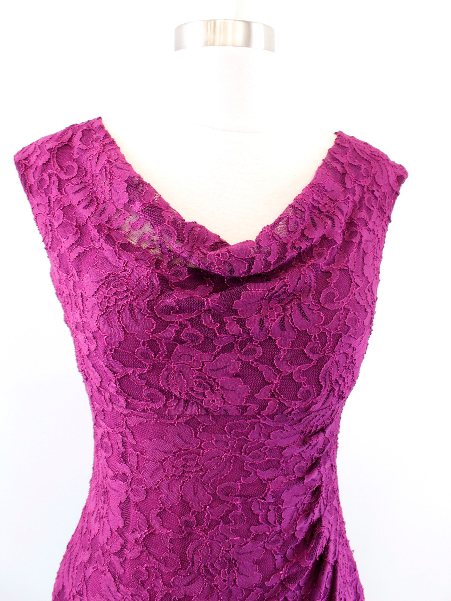 Lauren Ralph Lauren Purple Draped Neck Ruched Wiggle Sheath Dress Cocktail Sz 2