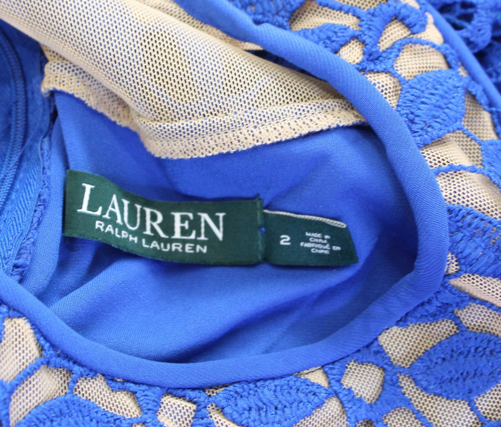 Lauren Ralph Lauren Womens Blue Geometric Lace Illusion Sheath Dress Size 2