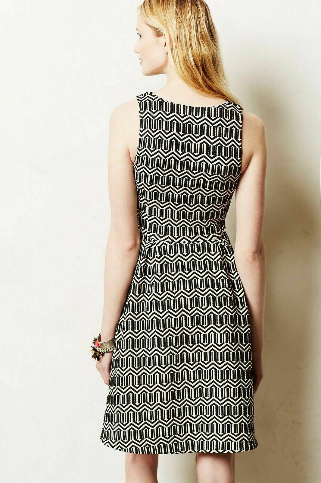 Leifsdottir Anthropologie Tonnelle Black Geometric Textured Zip Front Dress Sz 2