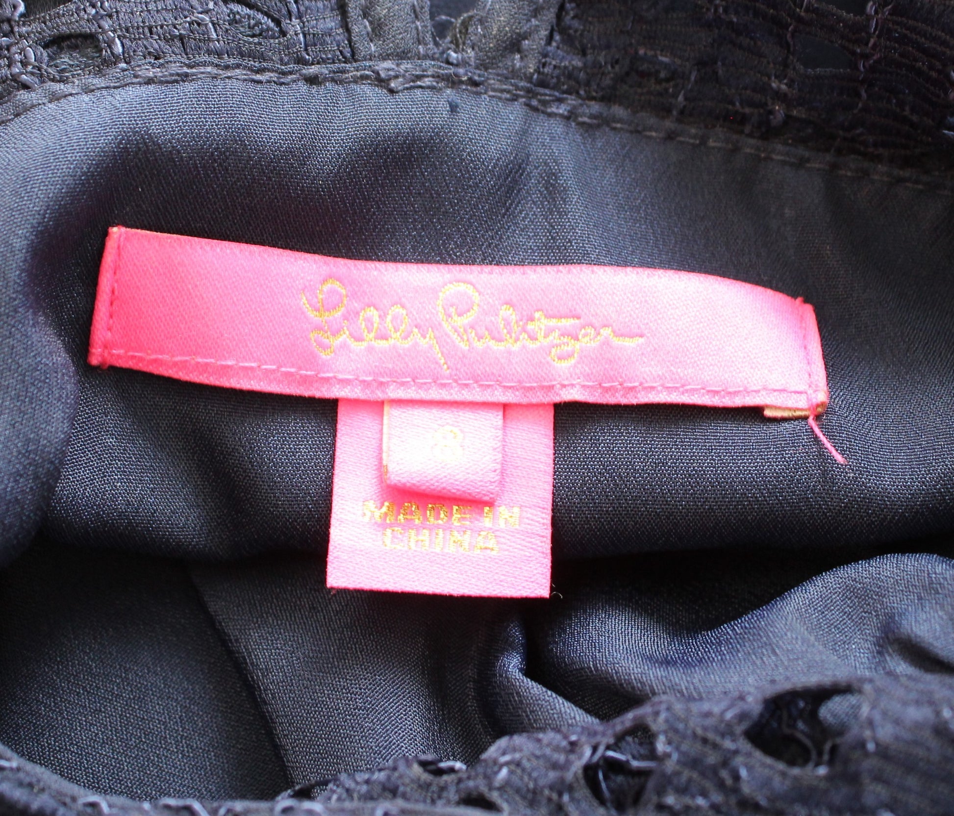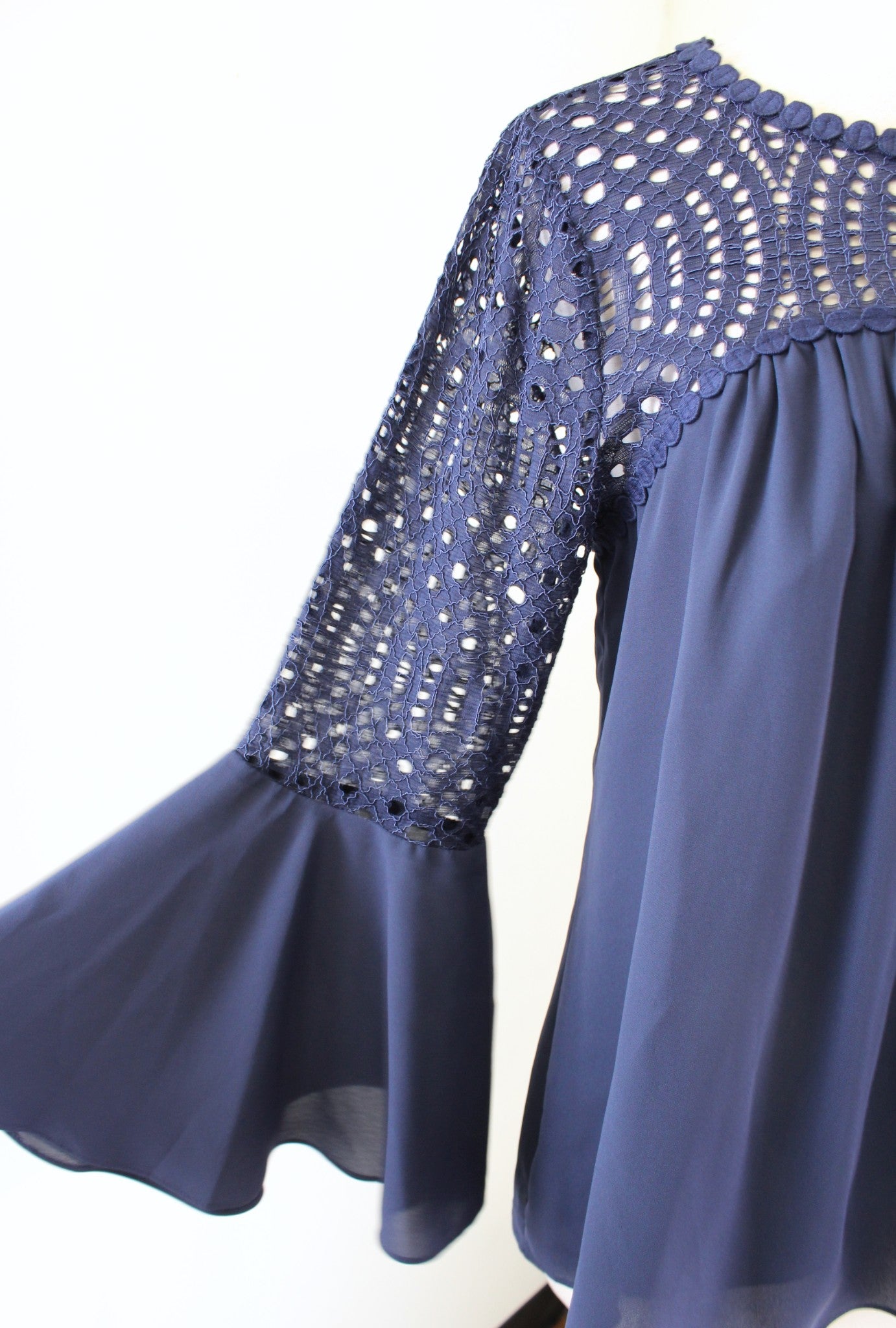 Lilly Pulitzer Amenna Navy Blue Bell Sleeve Crochet Lace Neck Top Blouse Size 8