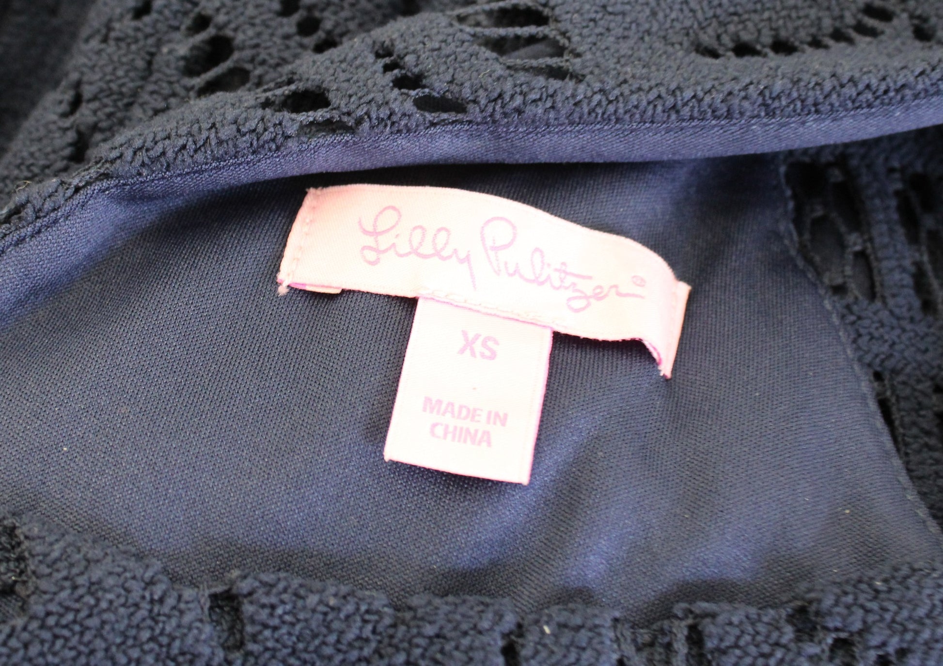 Lilly Pulitzer Mango Shift Dress True Navy Leafy Palm Lace Size XS Sleeveless