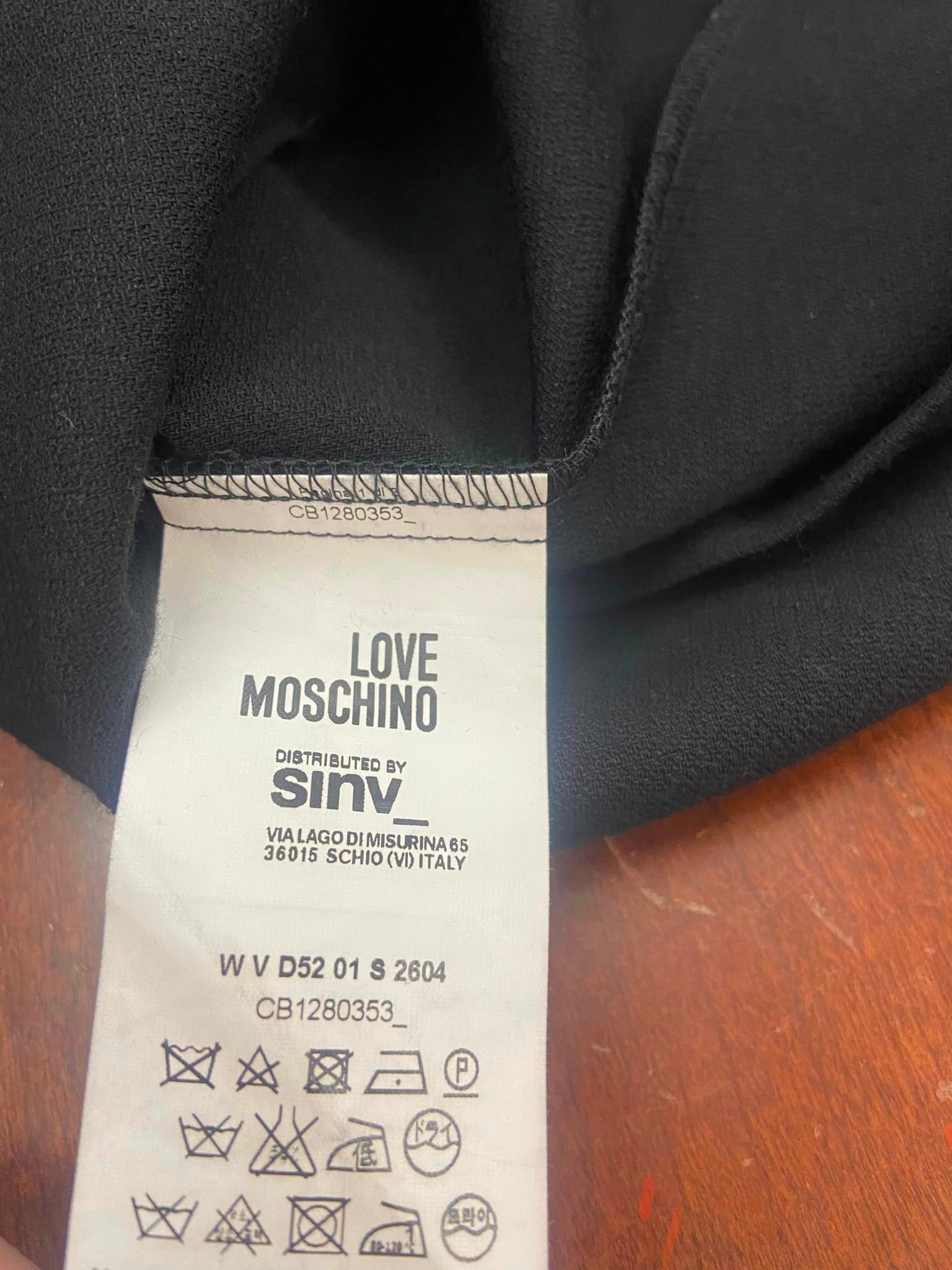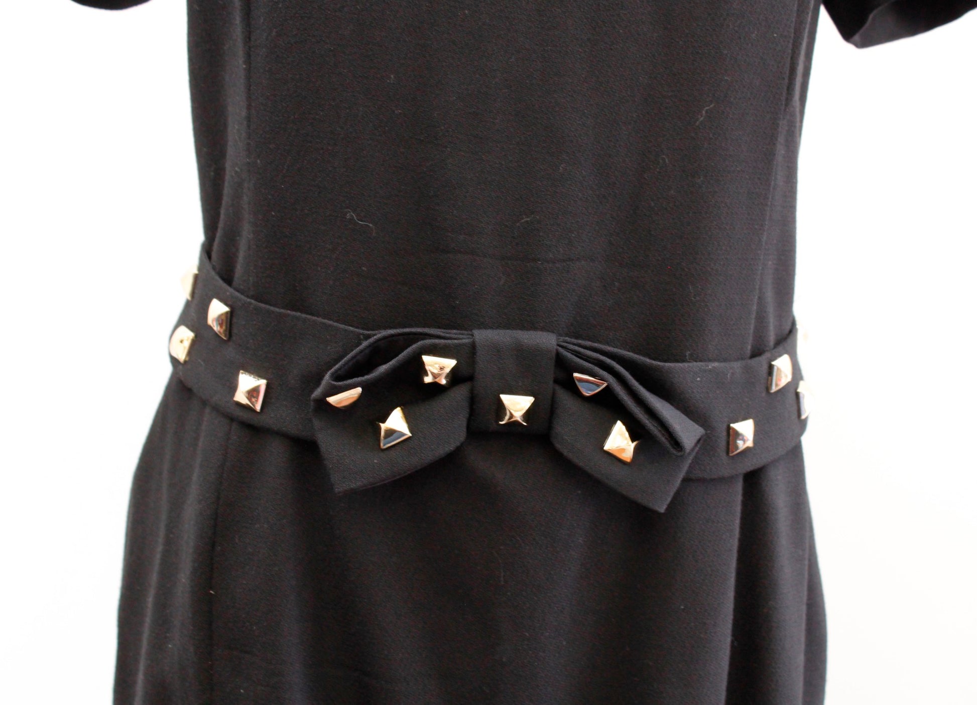 Love Moschino Black Gold Studded Bow Belt Short Sleeve Dress Wool Size US 8