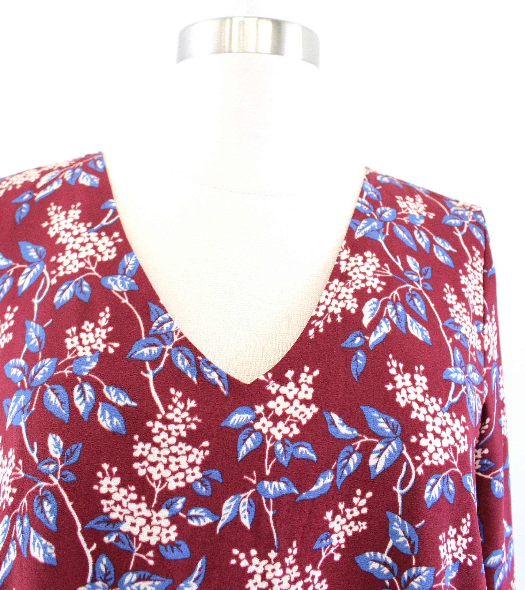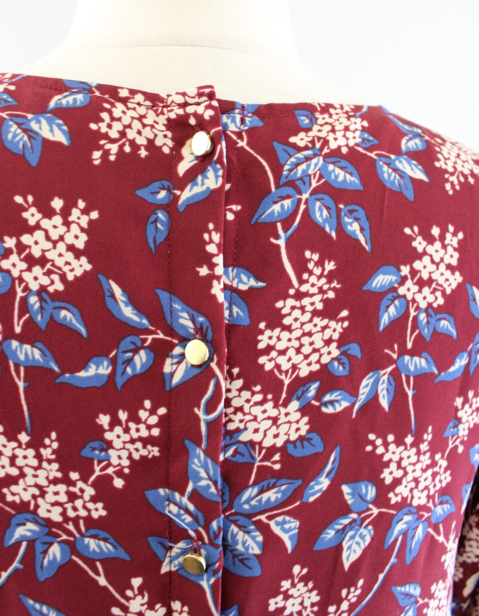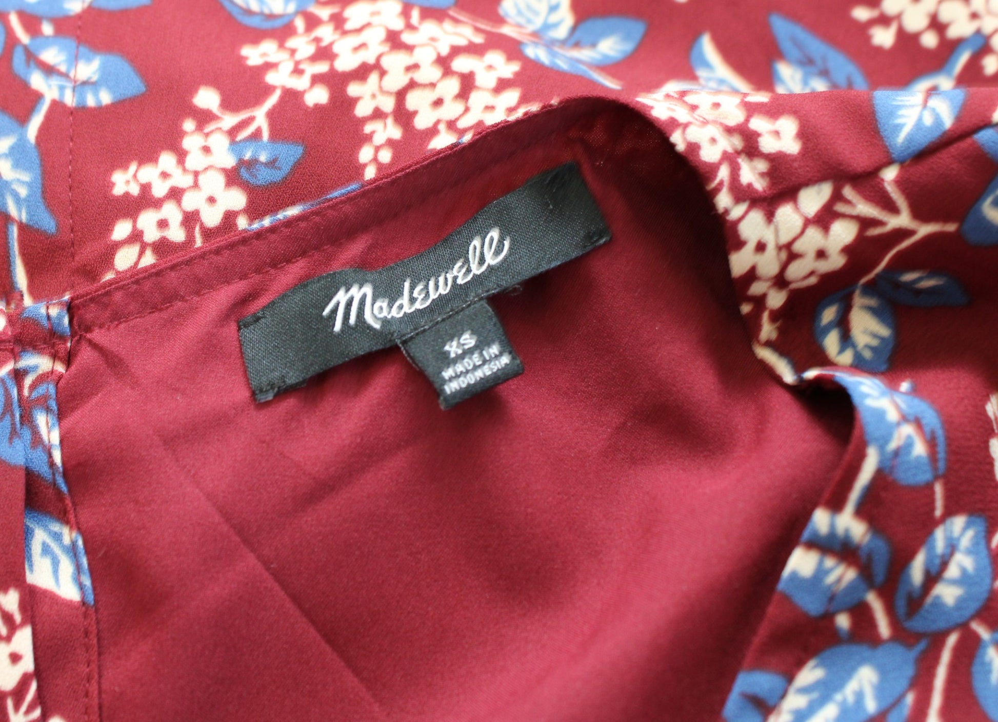 Madewell Antique Floral Print Button Back Shift Dress Size XS Deep Red Blue