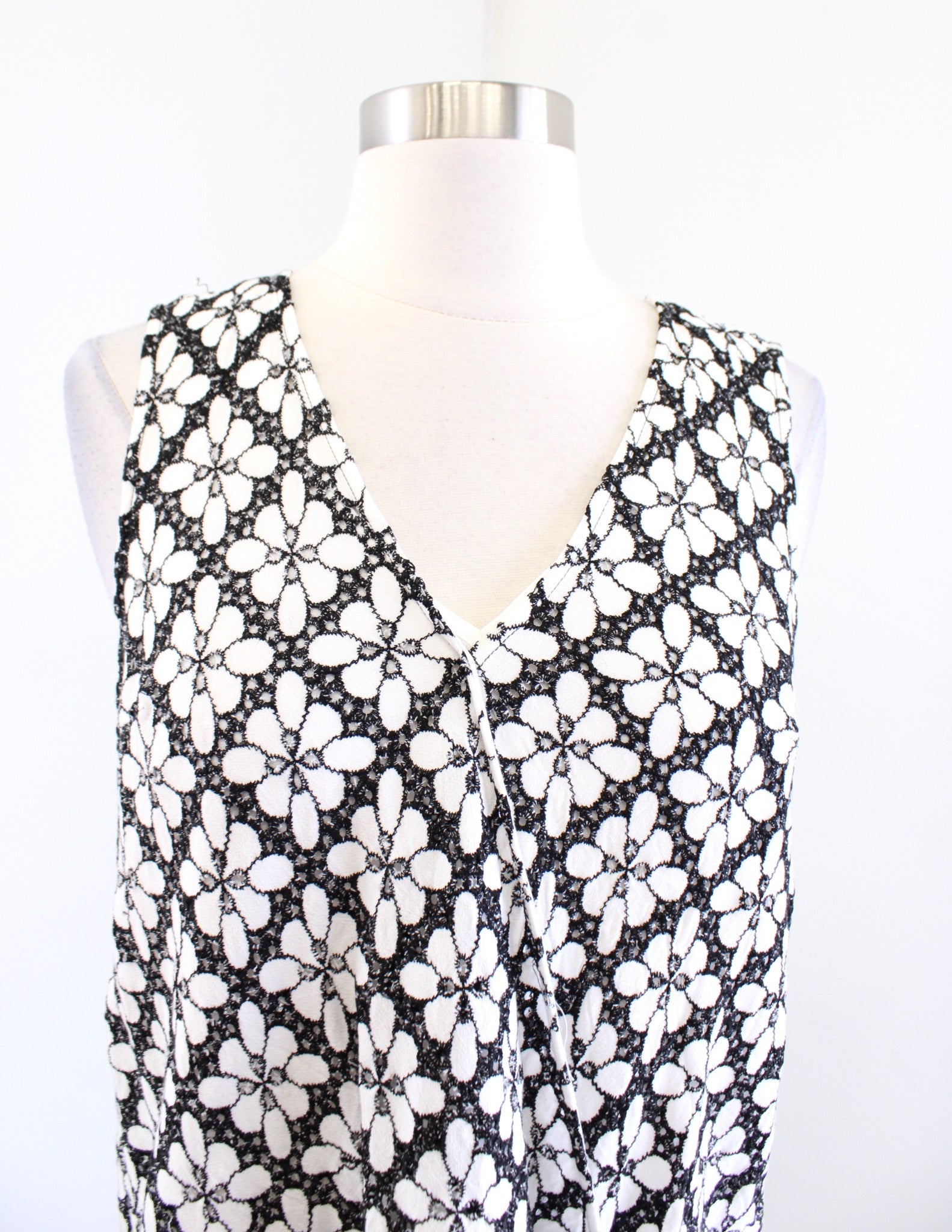 Maeve Anthropologie Coralie Black White Floral Lace Surplice Top Blouse Size 6 Sleeveless