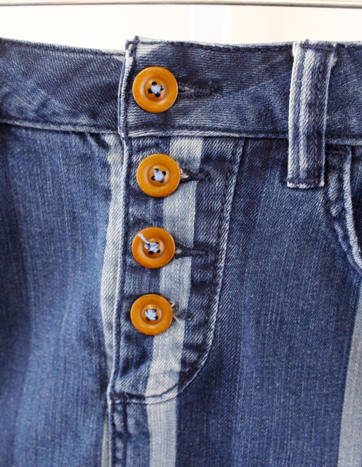 Maeve Anthropologie Denim Jean Striped Pencil Skirt Button Fly Size 0