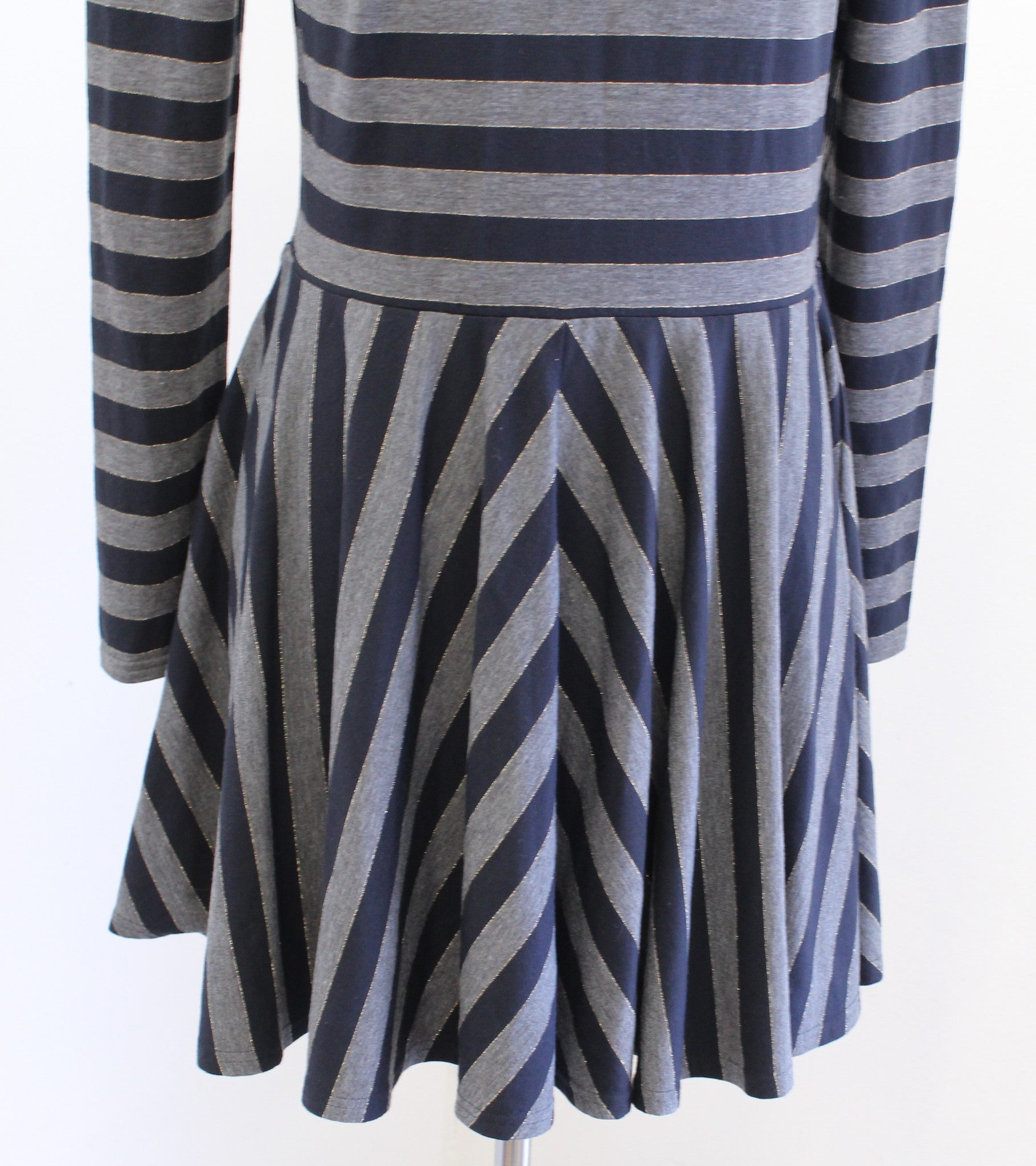 Marc Jacobs Navy Blue Gray Shimmer Striped Flounce Turtleneck Dress Size S Gold