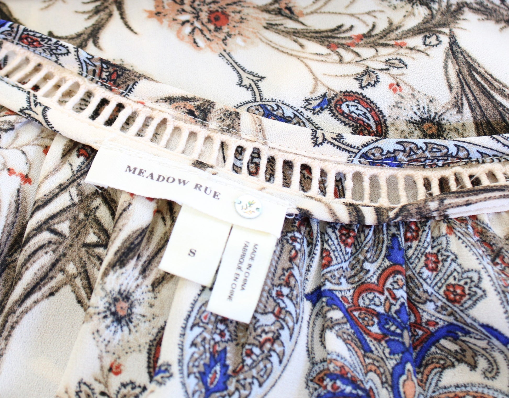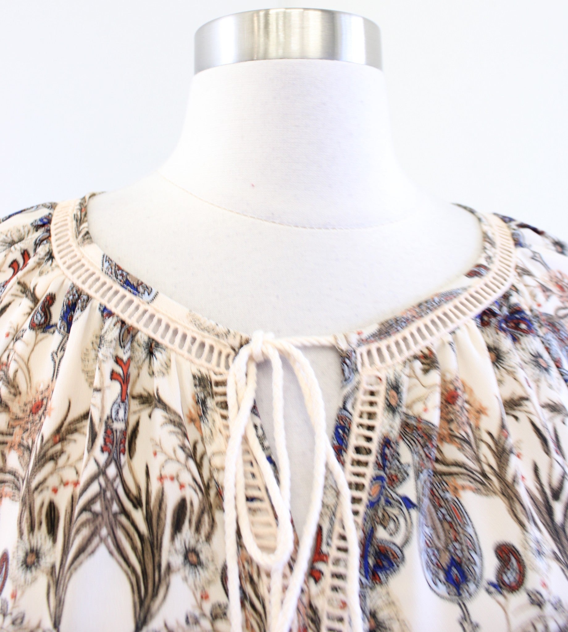 Meadow Rue Anthropologie Myrtle Cream Paisley Print Floral Tassel Top Blouse S Long sleeve