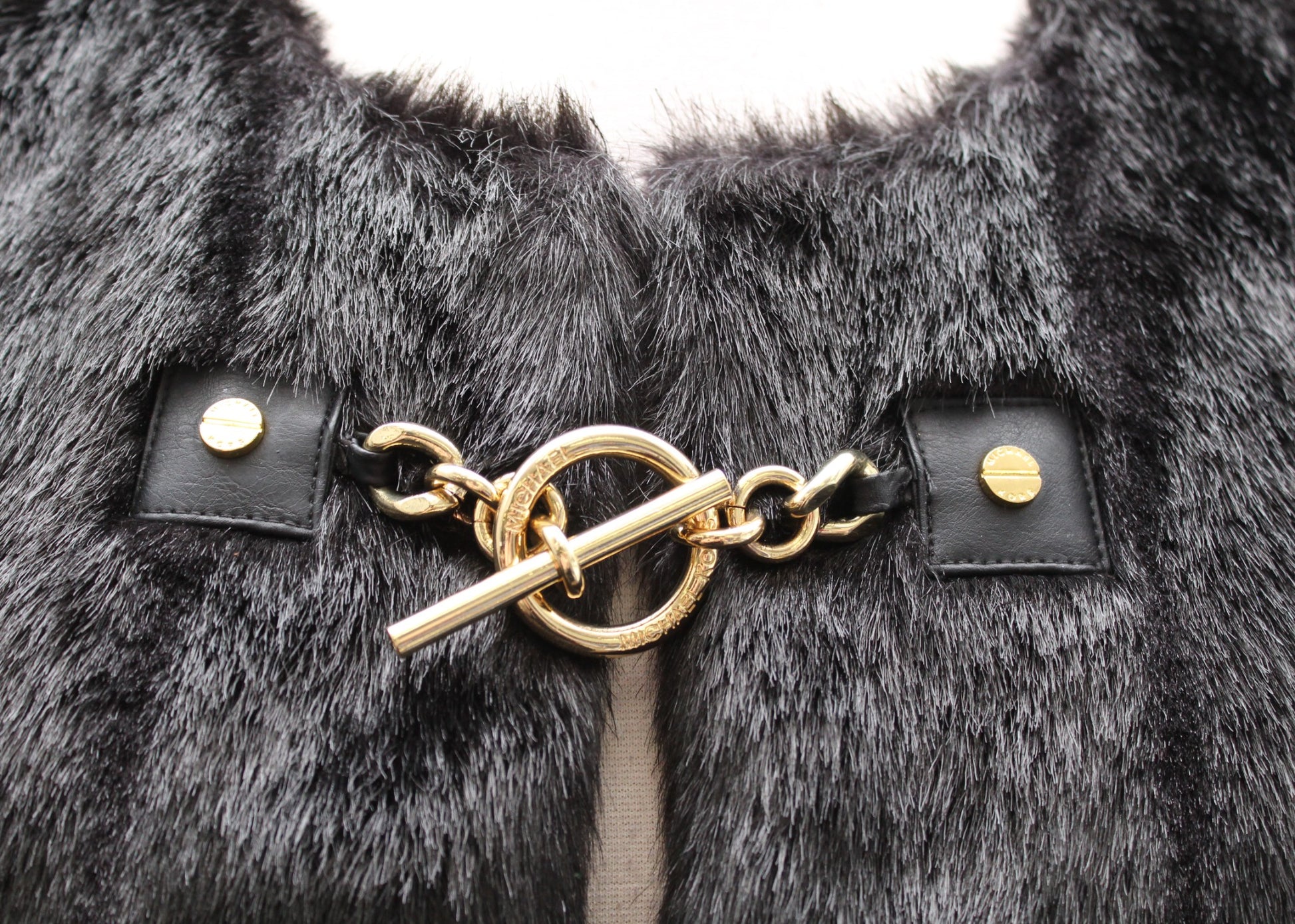 Michael Kors Black Soft Plush Faux Fur Gold Chain Buckle Clasp Vest Size L